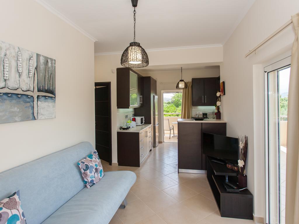Green Orange Villa is the ideal place for a pleasant stay with family or friends and is located in the traditional village of Koufos, near the famous village of Alikianos, next to the beautiful Lake Agia, just 12km from the charming city of Chania, Crete. The Agioi Apostoloi village and the well-known Golden Beach are almost 8 km away, while the Platanias seaside resort is just 8.5 km away. The villa consists of two bedrooms and a fully equipped kitchen. It is modernly furnished and fitted with a satellite TV and a bathroom with a bath, a hairdryer, free toiletries, and air conditioning. From the balcony, you will have a beautiful mountain view with the pool and the garden.