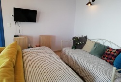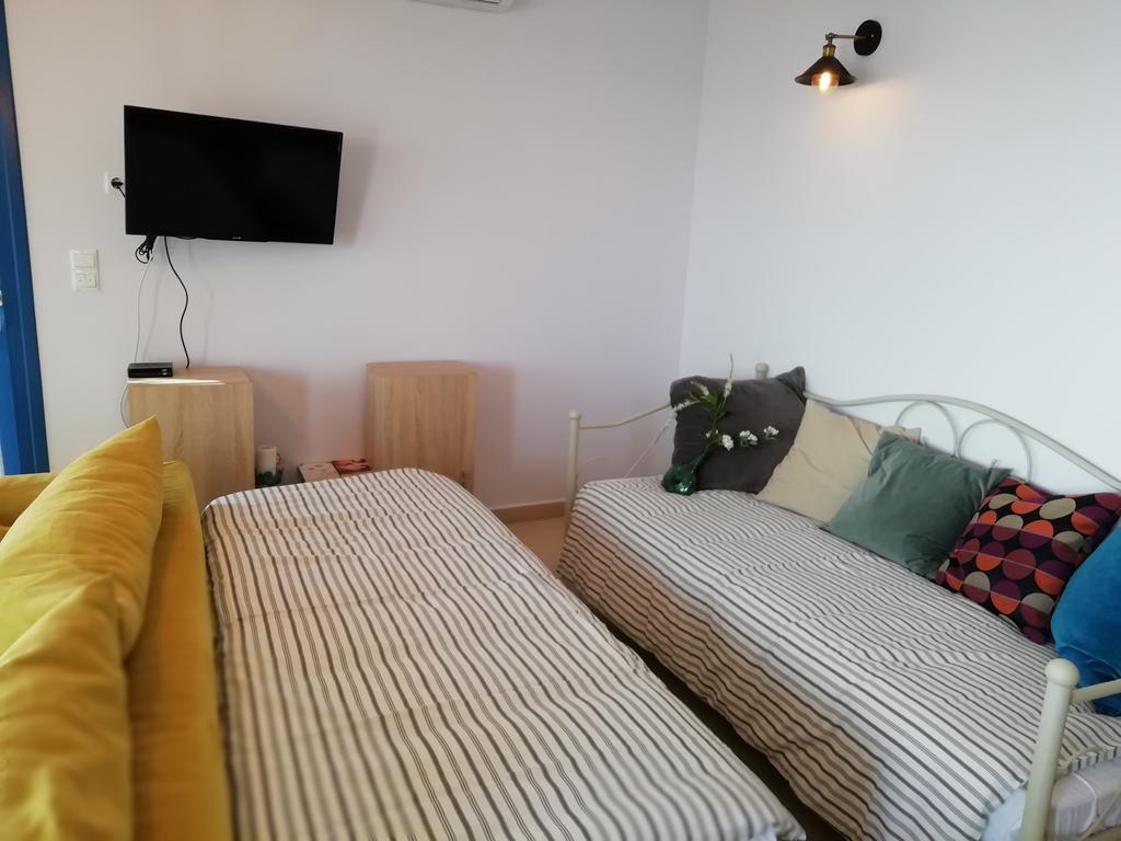 Mastiha Villas is a recently constructed, luxurious three-villa complex located in Agios Ioannis Kallimassia, Chios. The stunning beach at Agia Fotini, which is around a kilometer distant, is the closest. This Chios villa comprises of a living area with two single beds and a couch bed, as well as a bedroom with a double bed. You can add a rollaway bed, and if you have a baby, a crib can be installed. You may prepare everything you want in the fully furnished kitchen, which includes an oven, stove, coffee maker, kettle, toaster, and refrigerator. Coffee, sugar, salt, spices, cookies, water, juices, wine, and fruit (free) are all located in the kitchen. Your refrigerator also has cheese, turkey, toast, and other food items. The villa can accommodate up to five guests.