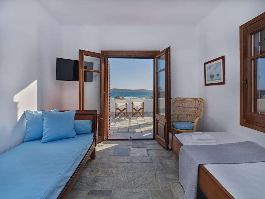 You are invited to stay at Golden Beach Villa, which is situated on the largest and best-kept beach on the island of Paros. This distinctive home, which was constructed in the style of traditional Parian architecture, can house up to ten guests. Combining three independent living areas with unrestricted views of the Aegean Sea into one creates a space that offers seclusion as well as community. Beautiful accommodations by the sea that will benefit your health, mind, and spirit.