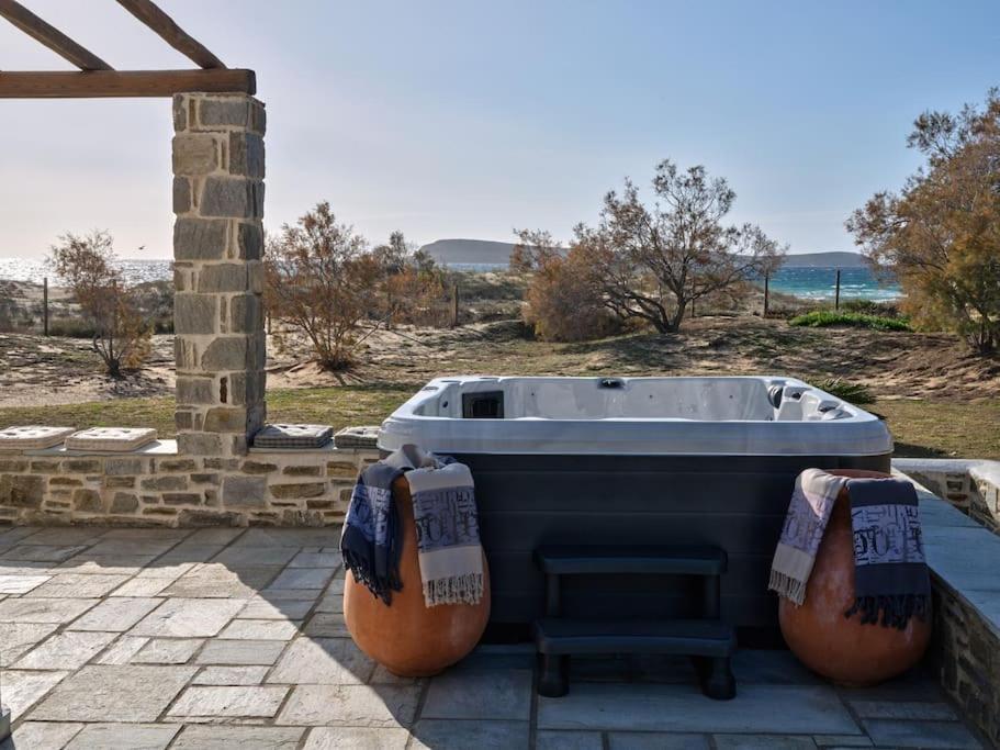 The Golden Beach Villa is 150m away for Chrissi Akti beach, one of the most remarkable beaches not only in Paros but in Greece. Once the site of the international windsurfing championship, it now provides water activities for people of all ages and skill levels, including windsurfing, sailing, sea kayaking, water tubes and bananas, water skiing, and, a short distance away, scuba diving. Other water sports available include yoga and massages. Numerous restaurants, mini-markets, and bars are all accessible by foot. It's simple to get to and from this amazing location. If you are looking for a private accommodation, the Golden Beach Villa in Chrissi Akti is the ideal option for an unforgettable holiday in Paros.