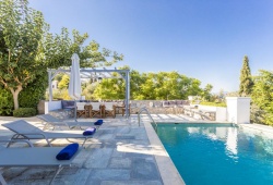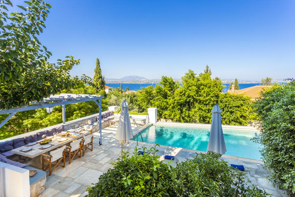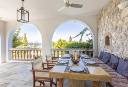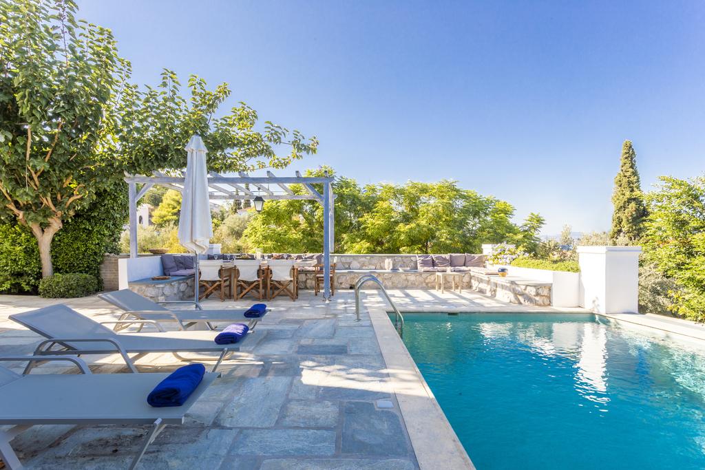 On the island of Spetses, the luxurious Villa Scirocco offers the perfect backdrop for an extravagant vacation. Ten minutes from the center of Spetses, it is perched on a hillside and offers stunning views of the surrounding area, the island, and the sea. There are five bedrooms, four bathrooms, a fully functional kitchen integrated into the open-plan living area, a ground level covered veranda, and an upper floor open veranda. One of the most sought-after properties on the island of Spetses is Villa Scirocco, thanks to its own outdoor pool. Among other villa facilities include a flat-screen TV, a dishwasher and a seating area with a fireplace. The villa can accommodate up to eight guests. Villa Scirocco is close to several well-liked locations, such as Agios Mamas Beach, on the road to the old port of Dapia. Bouboulina Museum constructed sometime in the 17th century, when Heroine Bouboulina was a key player in the Greek War of Independence in 1821, and the Port of Spetses, a place for the private yachts as well as commercial ones. It is also without a doubt one of the most well-known locations for nighttime entertainment.