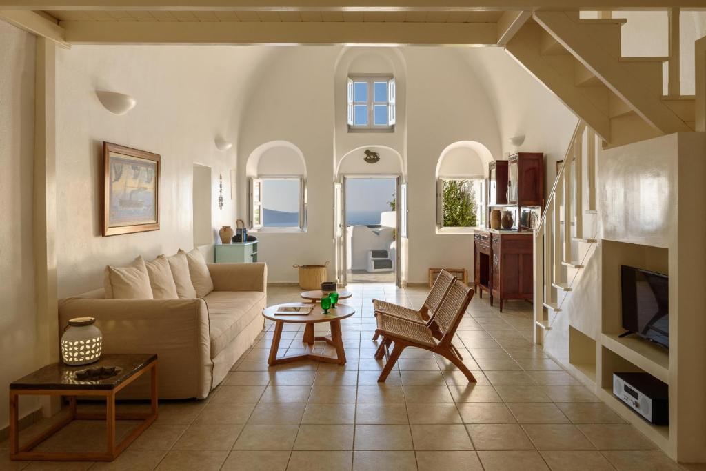 Two luxurious villas perch above the volcanic cliffs, offering views of the famous Caldera of Santorini and the Aegean Sea. Revelis Villa & Canava are ideally located in the centre of Fira for strolls throughout the day and at night, while yet being in a quiet suburb. Excellent dining options, a wide variety of shops to browse, and a vibrant nightlife are all only a short stroll from your property.