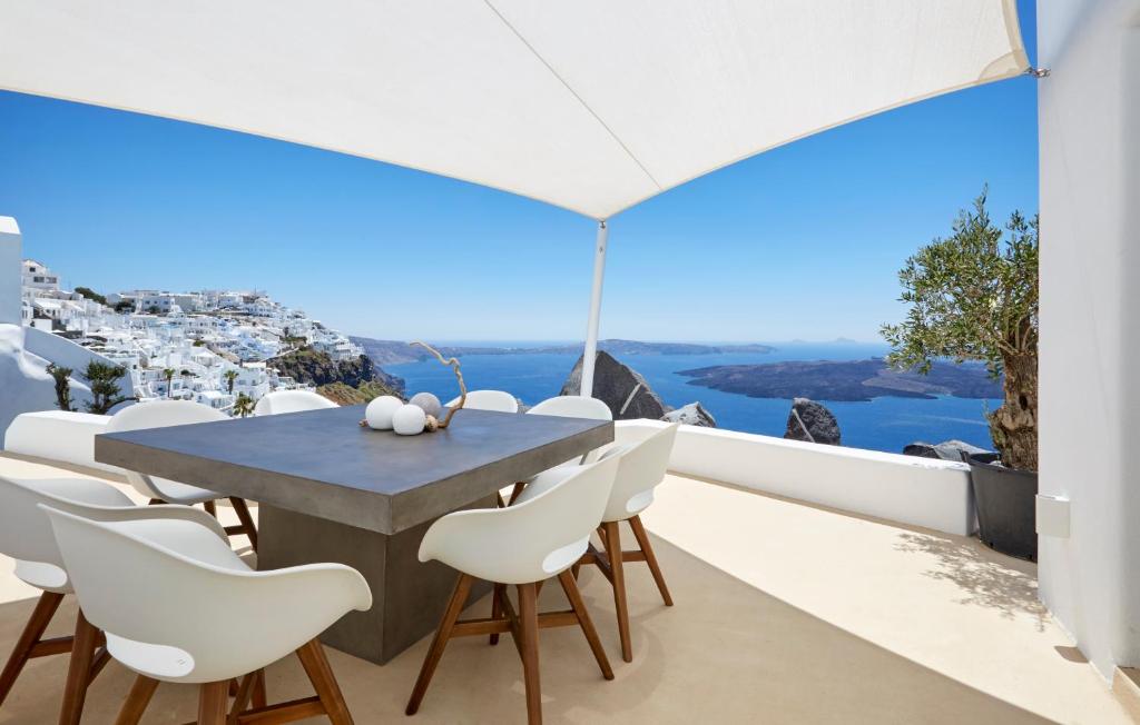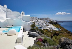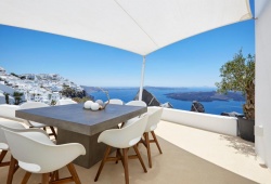 Located 280 metres above the Aegean Sea, this lovely private property boasts a clear blue skyline against the backdrop of Santorini Island. At Firostefani, Etheras Villa awaits you, perched atop a cliff with a view of Santorini's enigmatic volcano and the massive caldera. With breathtaking views that will leave you speechless and create the perfect setting for an amazing stay, this is one of the best and most exclusive locations on the island.