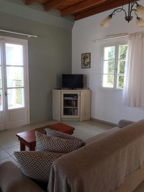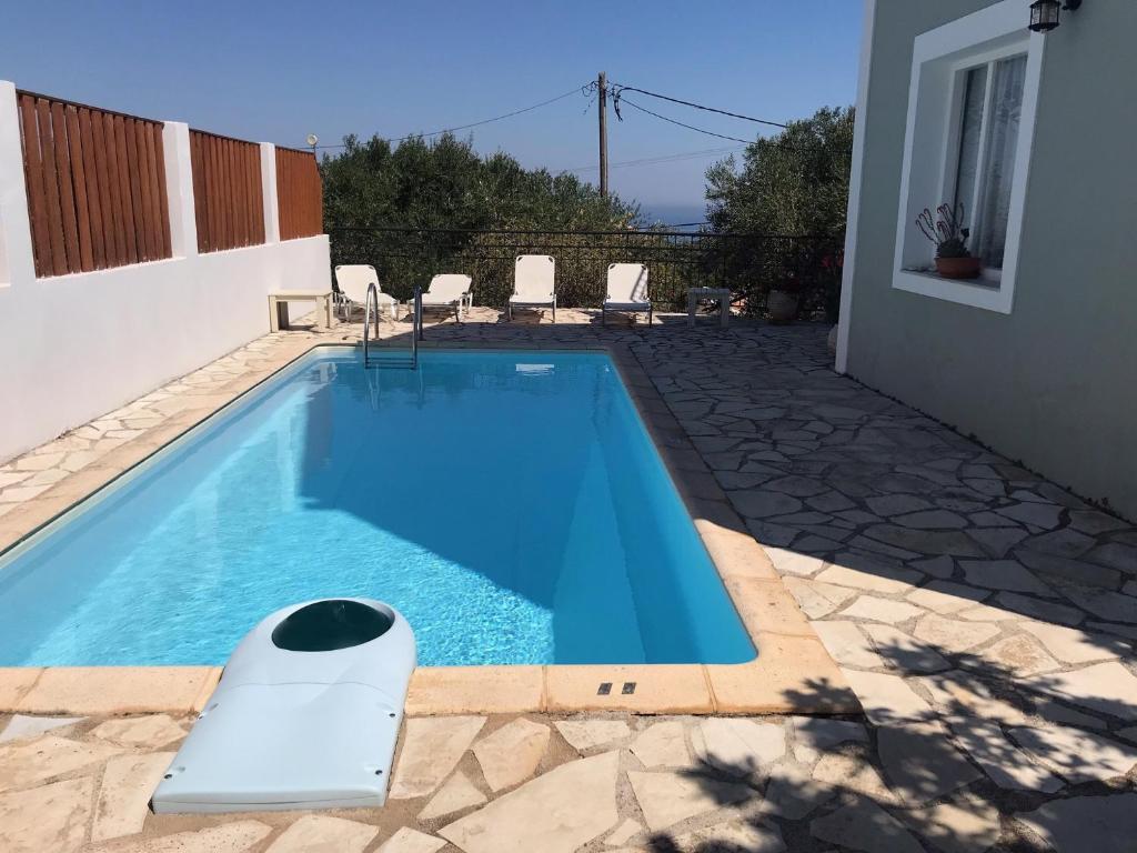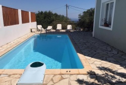 Nestled in a flowering valley and surrounded by mountains and hills, Villa Regina in Kefalonia is a luxurious villa home in Agia Efimia, enjoying the ideal island weather in the Fiscardo region. The property is brand new, neatly furnished, and faces the valley and hamlet, providing a peaceful and private setting. Up to 5 people, including children, can stay in the villa. The master bedroom features a king-size bed, while the second bedroom has two single beds. Both bedrooms are on the upper level of the villa. It is possible to make the cozy couch in the living area into a bed. The interior spaces of the home are completed by the roomy and well-lit bathroom and the useful kitchen. You'll have enjoyable and restful times in the yard with the pool and the view. Rejuvenate yourself at Fiscardo's stunning and sophisticated Regina Villa. Enjoy a holiday in Kefalonia in the comfort of your own home in a welcoming and tranquil setting with family or friends.