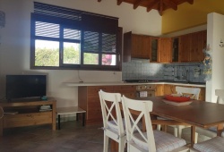 Two bedrooms, each with a double bed, and two bathrooms are located on the lower floor and are connected by a convenient exterior stairway. The villa can accommodate up to 6 guests.