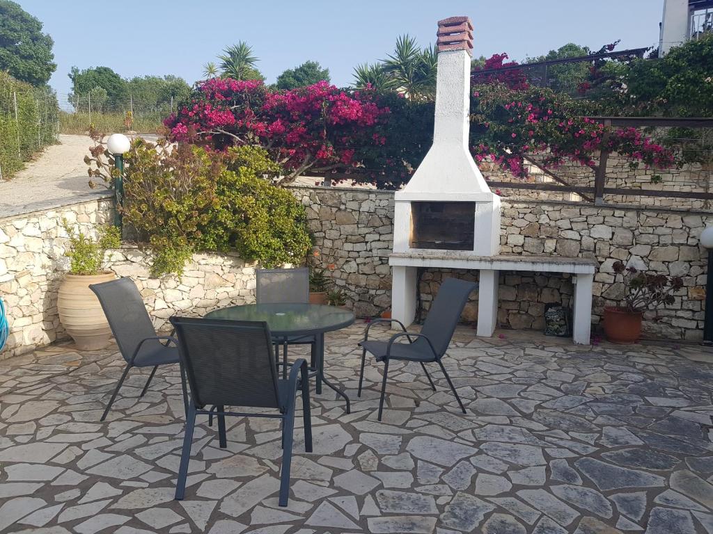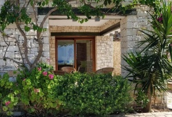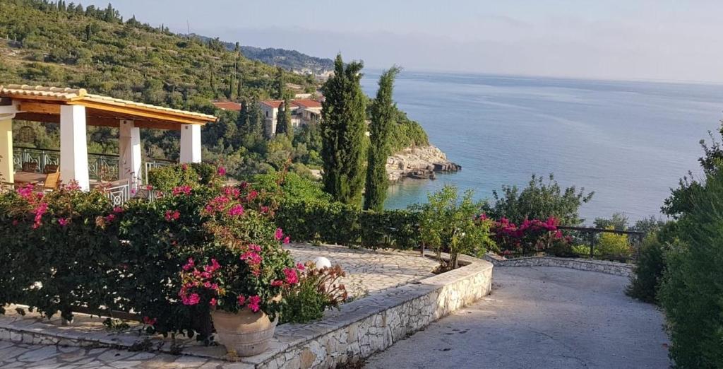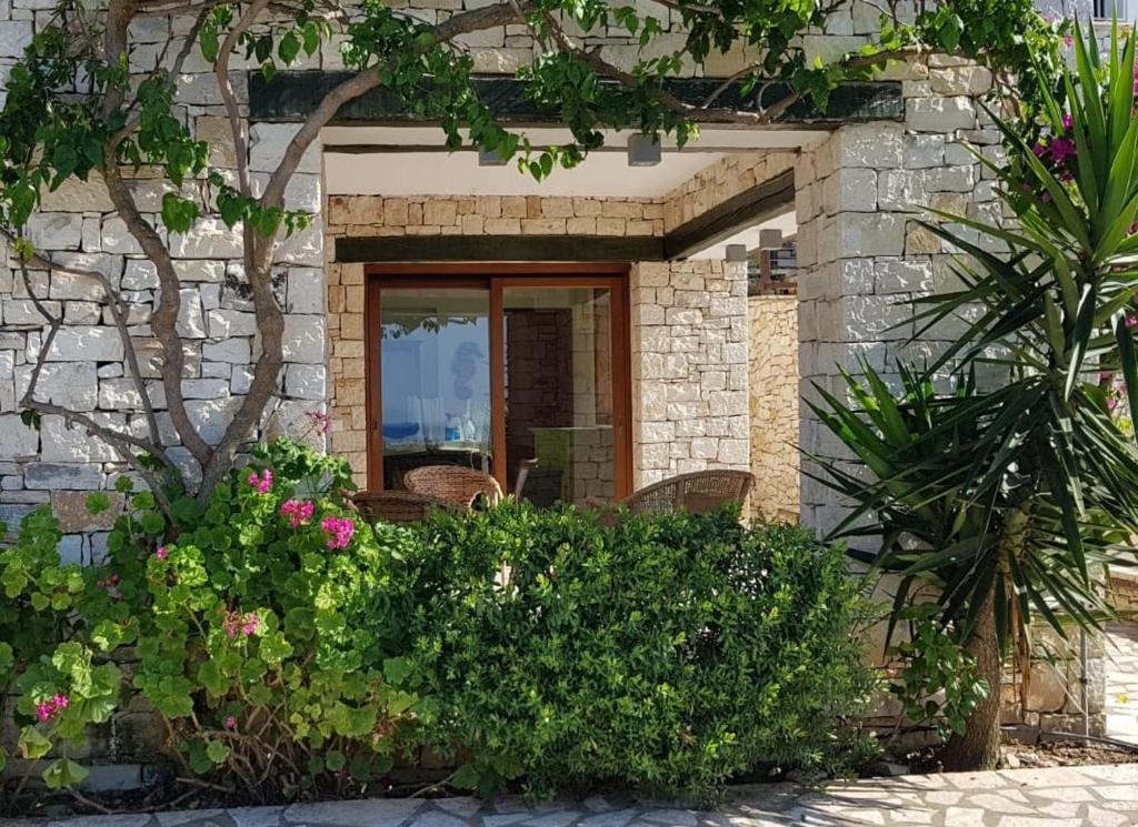 In the Gaios district of Paxi, the unique Villa Eos complex is surrounded by succulent plants, cypress trees, and bougainvillaea. These elements, along with the sky and the ocean view, provide the most breathtaking vistas, particularly at sunset. The stone-paved outside leads to the lovely, shaded patio, which has a sizable table and seating space.