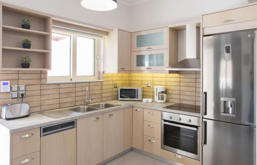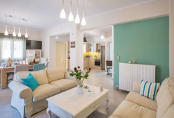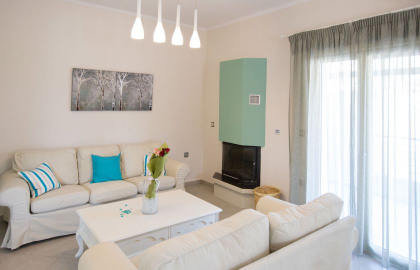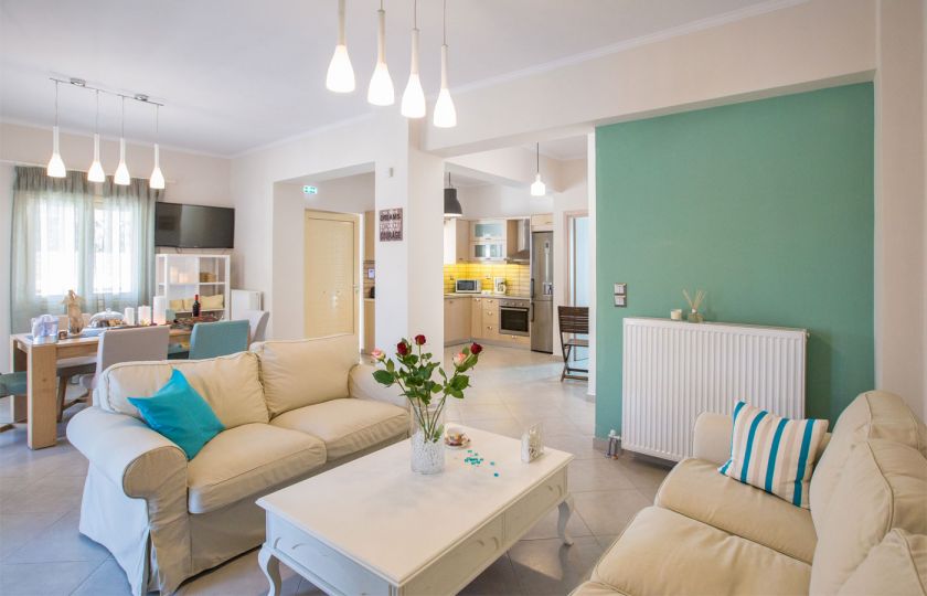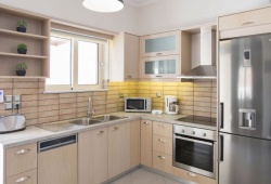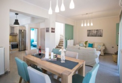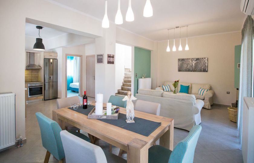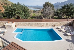 The living room and dining area include a satellite TV, and the fully furnished kitchen has a fireplace. The bedrooms with their breathtaking views, a little TV in each, wireless internet, a dishwasher, and a washing machine and clothes dryer are all located on the upper level. There is a swimming pool outside with sun loungers and parasols, as well as BBQ pits. The villa can accommodate from 2 to 6 guests. If you are searching for privacy and leisure, Sweet Love Villa in Georgioupoli your perfect accommodation for you trip to Crete.
