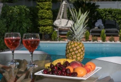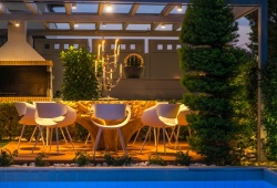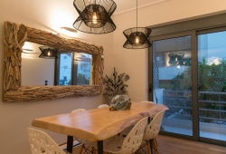Riviera Pool Villa is located in a very quiet area of Glyfada, a superb of Athens. This villa is ideal for families nad groups of friends who desire to stay together for a fun time in Glyfada, Athens. The villa has a dining area, a fully supplied kitchen, three bathrooms, bed linens, towels, a flat-screen TV, and a balcony with views of the city. Along with a washing machine, a dining space, and a bathroom with a bath and shower, the air-conditioned villa also has a washing machine. Riviera Pool Villa also features has 2 barbecues, a firewood, an ice machine, a gym and a very large patio area on the 2nd floor where visitors can see the sunset. The garden that has the swimming pool is 400 sq.m. The villa can accommodate up to 9 guests.