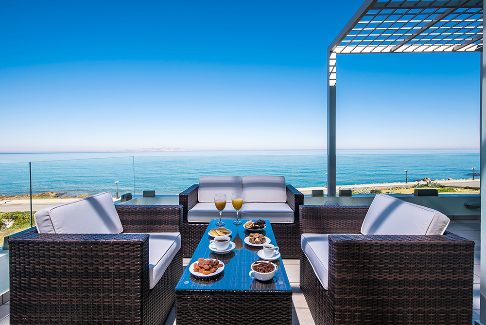 Poseidon consists of three luxurious and fully detached villas, ideal for a comfortable stay at the seaside resort of Kato Gouves, only 18 km away from Heraklion. The décor of the villas is in line with a classic philosophy, while each villa has its own character, expensive hand-crafted furniture, and original art pieces. Each of the three villas at the Poseidon Villas complex in Kato Gouves, Heraklion, has been thoughtfully built to provide a luxurious, private, and restful stay. Rich furnishings, opulent amenities, with an unrivaled panorama of Kato Gouves beaches and the vast blue Cretan Sea With Poseidon Villas, every desire of an opulent vacation beneath the scorching Mediterranean sun may come true, right close to the sea. The classic café at Poseidon Villas is one of its highlights; it is open every day from 7 a.m. to 11 p.m. Here you may get freshly baked Cretan treats like kaltsounia and pies filled with cheese, veggies, and other ingredients.