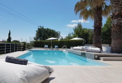 The Anna Maria Villa is 320 square meters with 4000 square meters plot of land and has a private pool of 50 square meters. Is situated in one of the most beautiful places in Halkidiki– Kriopigi just 80 kilometers from Thessaloniki. The Anna Maria villa is 300 meters from a beautiful sandy beach and provides stunning views across the sea.