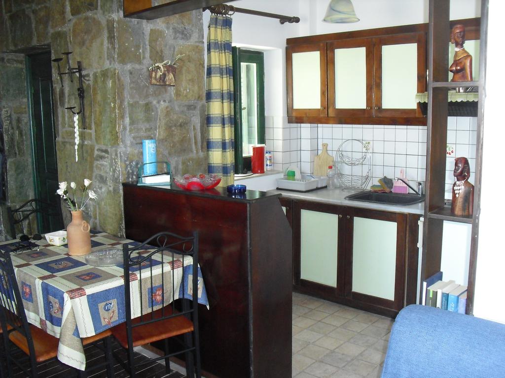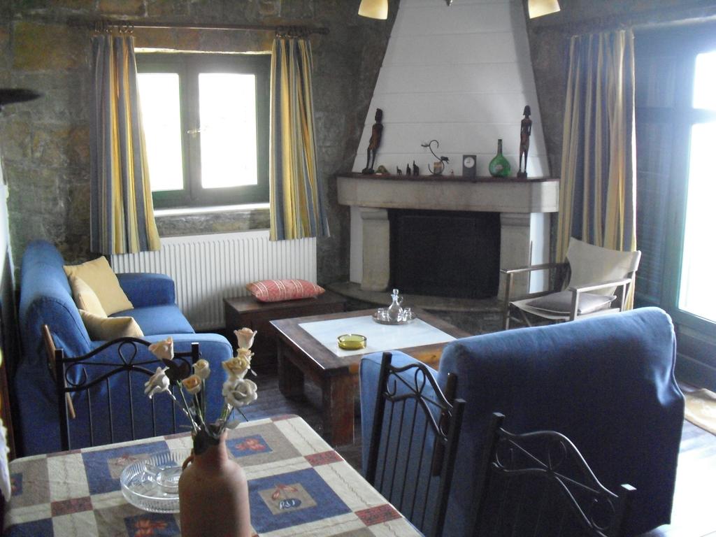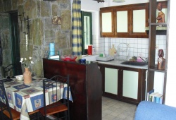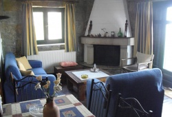 Each house has one room with sitting area and sofa (which becomes a double bed), fireplace, satellite TV, kitchenette, bathroom with shower, staircase leading to the lobby of the first floor and the sleeping area. All the houses are stone construction, with wooden roof and tiles.