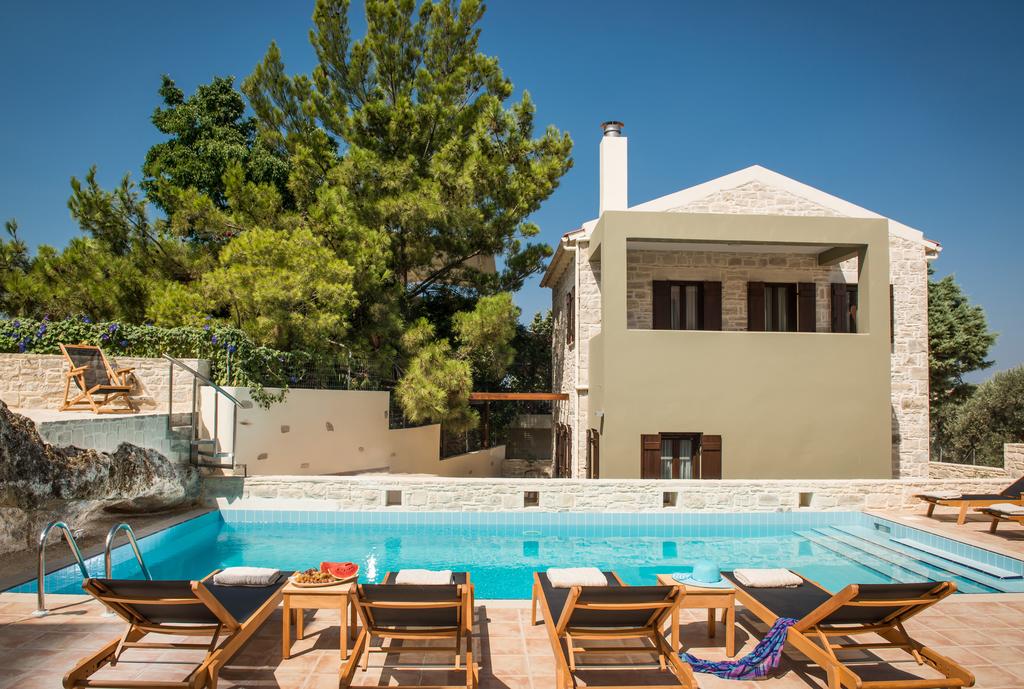 Situated at the foot of the village of Sivas, the Phaistos Villas offer a panoramic view of the Messara valley, the Psiloritos in the mountain chain Ida, and the distinctive blue of the south Cretan sea in the distance. The three individual holiday villas of the Phaistos Villas complex were built on different levels, offering independence, privacy, and uninterrupted views of the surroundings. A lovely 40 m2 pool of 1,5m depth, situated in the centre of the complex, can be enjoyed by guests of all three villas.