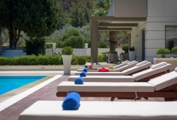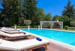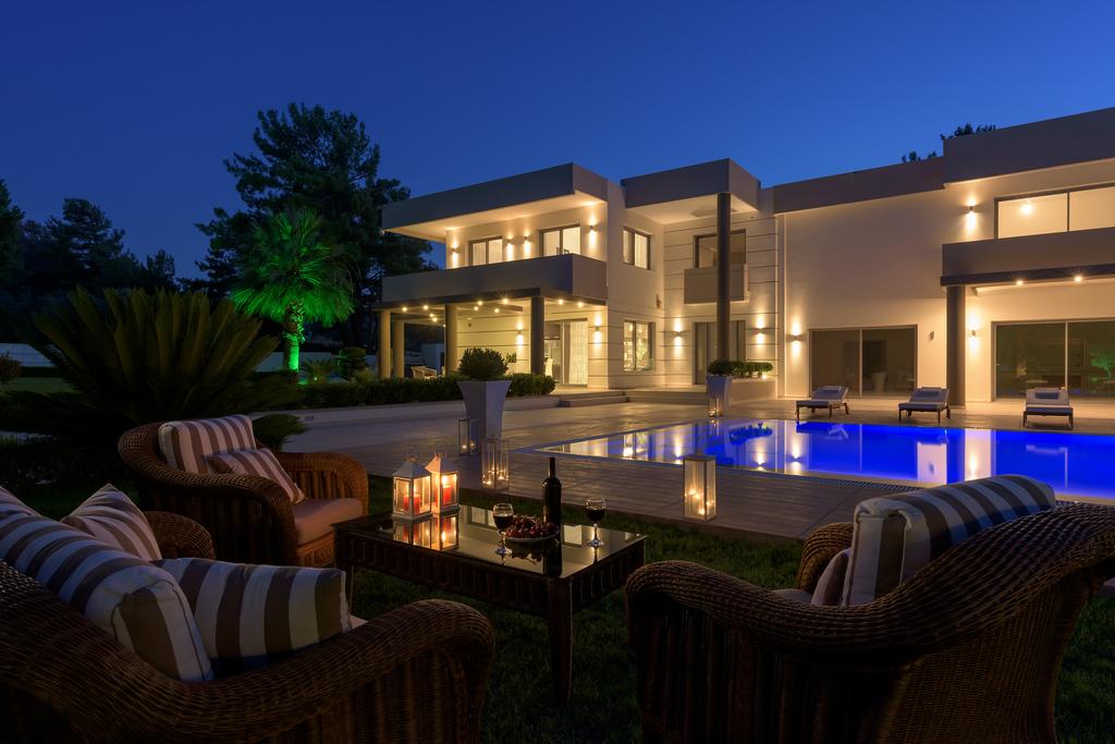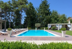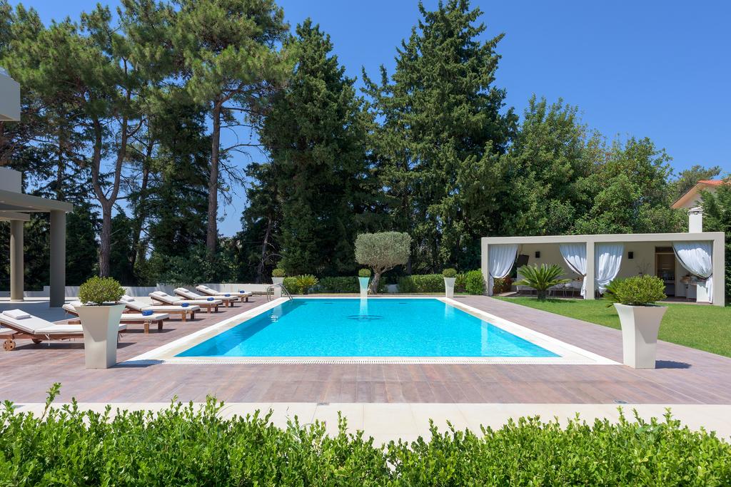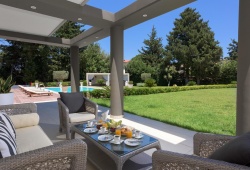 Between the well-known Filerimos Mountain and the settlement of Ialyssos, this luxurious Bella Foresta Villa is situated in one of Rhodes' greatest settings. Ialyssos Beach is just a 5-minute drive away, while Rhodes Town is ten minutes away. For those who wish to be close to everything while yet enjoying a quiet vacation, the Bella Foresta villa is the perfect starting point. There are four bathrooms and five bedrooms. Families, couples, or groups of friends may stay in opulent and comfortable accommodations in this 300 m2 two-story luxury property. The villa offers luxurious living spaces, contemporary conveniences, a private pool, and breathtakingly beautiful surroundings for a delightful, unwinding, and unforgettable visit. Each room of Bella Foresta has access to a patio or balcony that offers an all-encompassing, unobstructed view of the garden. The villa can accommodate up to nine guests.