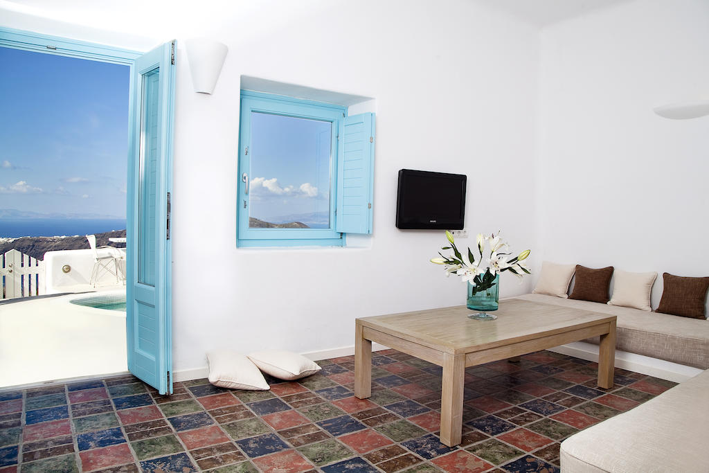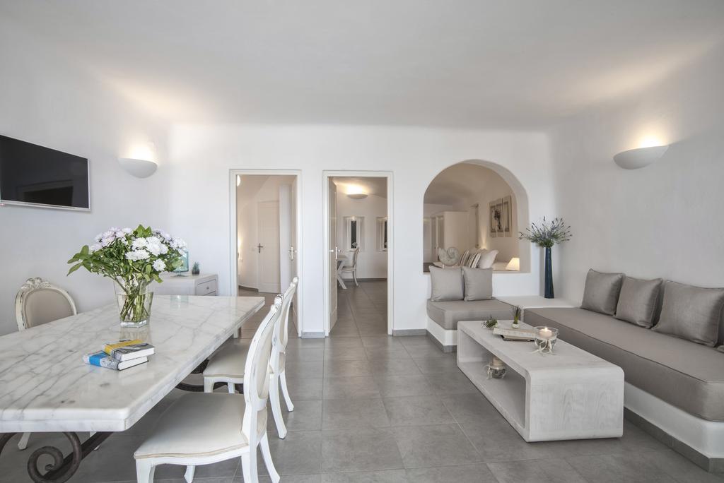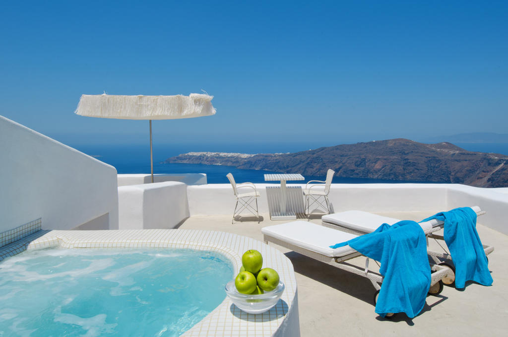 White Santorini Suites & Spa is located at the highest point of Santorini’s majestic caldera. White Santorini Suites & Spa offers luxurious and spacious suites with an amazing view of the Aegean Sea, the colourful village of Oia, Thirassia Island, at the legendary sunset. The White Santorini Suite & Spa enjoys an idyllic location in the beautiful Cycladic village of Imerovigli. High on the island’s famous cliff, within a short distance from the village’s main square, White offers spectacular views over the sea and a breathtaking sunset. The property, which is divided into three floors, has some of Santorini's biggest private terraces, the majority of which include a private hot tub or pool. The chic suites at White Santorini include with a private sitting area and opulent bathrooms.