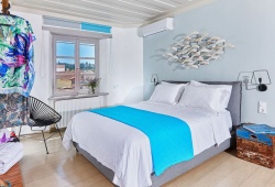 Two separate bedrooms with en suite bathrooms with showers and whirlpools are available on the ground floor of Villa Rouga. A tiny kitchen and the owners' wine cellar are also located on the ground level. A sauna, two indoor bicycles, a single treadmill speed, and a few tiny weights are all located on the same floor as the gym. On the second level is a magnificent open-plan living area with a fireplace and a smart satellite TV that overlooks the sea. The villa can accommodate up to eight guests. If you are searching for a private accomodation in Chania, Villa Rouga is the ideal option for a memorable vacation in Crete.