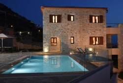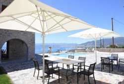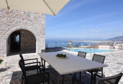 If you are searching for private accommodation in Kalamata, Villa Dafni is the ideal option. This property is a 9-minute walk from the beach and 5.5 km from Municipal Railway Park of Kalamata. The villa has four bathrooms, five bedrooms, a dining area, a fully functional kitchen, a patio with views of the pool, and a flat-screen TV. It can hold up to eleven people. While swimming in the villa's infinity pool, guests may enjoy the view, and there are nearby sightseeing tours available. There is free parking for your car and wifi available in all areas. Airport transfers are provided by the accommodation, and bicycle rentals are offered for exploring the area. Kalamata International Airport is 18 km away from Villa Dafni.