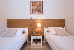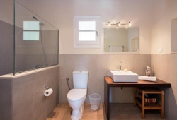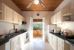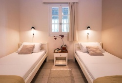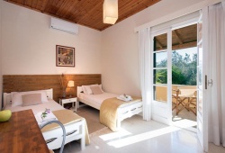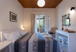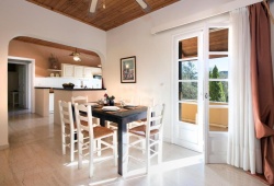 Surrounded by lovely grounds and including its own swimming pool, Villa Apleton sleeps three people and is conveniently near to all the vacation facilities one could ask for. The property is near stores, tavernas, and the beach. Villa Apleton is located to one of Corfu's most picturesque villages, Kassiopi. Good design is evident in the cool, airy interior of this Corfu villa, which features huge windows that highlight the lovely grounds. The 100 square meter, one-story Villa Apleton features three air-conditioned, roomy bedrooms. Two of the bedrooms have twin beds and a shared shower room, while the third bedroom has a double bed and an en suite bathroom. The home features an open living space with an adjacent kitchen that opens to a shaded terrace encircled by shrubs and olive trees, creating the impression of an English garden. The pool is positioned on one side.