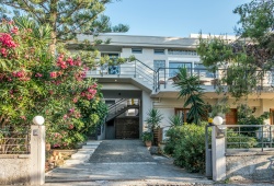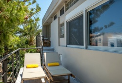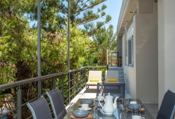 The Terezakis House is in a very favorable situation, about 4.5 kilometers and a 10-minute drive from Chania, surrounded by pine trees and with a view of the sea. It is the perfect backdrop for peaceful vacations for families with kids. It also provides convenient and secure access to the beach, which is only 30 meters away by an unscheduled road. In addition to the promised serenity and leisure, the stunning sea bay with a Blue Flag, a lifeguard tower, and a first aid station—which is situated between the five-star hotels "Kalliston" and "Domes Noruz"—offers you the opportunity to engage in various water sports (windsurf, kitesurf, surf, SUP, etc.).