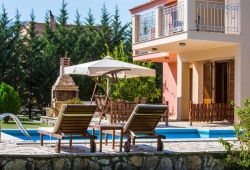 Penelope Villas consist of four delightful villas hidden in an olive grove of 2.000 square metres among gardens, lawns, and lemon trees. Nestled on the outskirts of Sami in Kefalonia yet close to the centre of the village, each villa is entirely private and comprises a discrete swimming pool and an outdoor barbeque. All air-conditioned villas are tastefully decorated and include balconies, cable TV, and free WiFi. The kitchen is fully equipped with a refrigerator and an oven. Private bathrooms provide a shower as well as a hair dryer and a washing machine. Penelope Villas in Kefalonia offers views of the surrounding mountains and pool. The villa can accommodate up to five guests.
