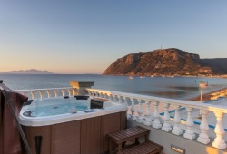 Villa Valeria is built on the pebble beach of Kefalos in Kos with the most crystal waters of the Aegean. The interior of the villa is decorated with love and care. Characteristics of the villa are the stone and the luxury, combined with the breathtaking view, which create a pleasant environment for you. Villa Valeria in Kos is equipped with air conditioning (cold and warm) and WiFi. It has two terraces on two levels, connected to the inside of the villa with an internal staircase with a glass movable electric roof, a barbeque, and a large marble dining room. On the second floor, there is a Jacuzzi for four people, a lounge, and a sun bed.