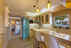 The villa's interior features two magnificent double bedrooms with double beds, three single beds dressed in opulent, romantic comforters, and 42-inch LED TVs throughout. Through their huge windows, they have a view of the sea and are sunny. The pastel-colored kitchen is fully furnished with all the appliances and necessities for making breakfast and dinner. It comes with an oven and stove, a huge refrigerator, a washing machine, a coffee maker, and opulent dining sets. Villa Valeria in Kos is an ideal option for anyone seeking exclusive accommodation in Kefalos.