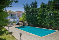 This Corinthian villa is located in the village of Ano Melissi of Korinthos, surrounded by bougainvillaeas and enjoying an unobstructed view of the sea. The Corinthian Residence promises a comfortable stay in a cosy and pleasant environment. It’s the ideal choice for families or large groups because it has four bedrooms, a dining area, a fully furnished kitchen, a flat-screen TV with satellite channels, a balcony with views of the sea, one bathroom, bed linens, and towels are all included. The Corinthian Residence is a sophisticated and comfortable villa with a private pool in Melissi, Korinthia. There is also a barbeque for your amusement.