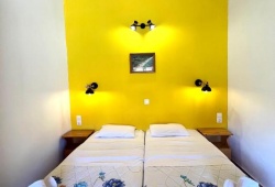 Panos Villas is a quaint vacation rental in Koukounaries, Skiathos, that is only 800 meters from the beach and offers a peaceful environment with lovely street views. Guests can enjoy the beautiful garden views from the villa's terrace. There is a satellite flat-screen TV and a cozy lounging area inside. An oven, toaster, refrigerator, stovetop, and utensils are all part of the fully furnished kitchen. A nice stay is ensured by the private bathroom's walk-in shower and hairdryer. Four persons can stay at the villa. Access to nearby attractions is made simple by the hotel's handy location. Panos Villas is only 1.2 kilometers from Marathas Beach and 1.7 km from Xenia Beach. The closest airport, Skiathos Airport, is about 13 kilometers away from the property.