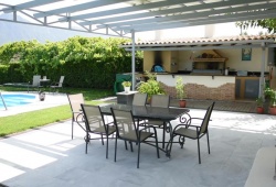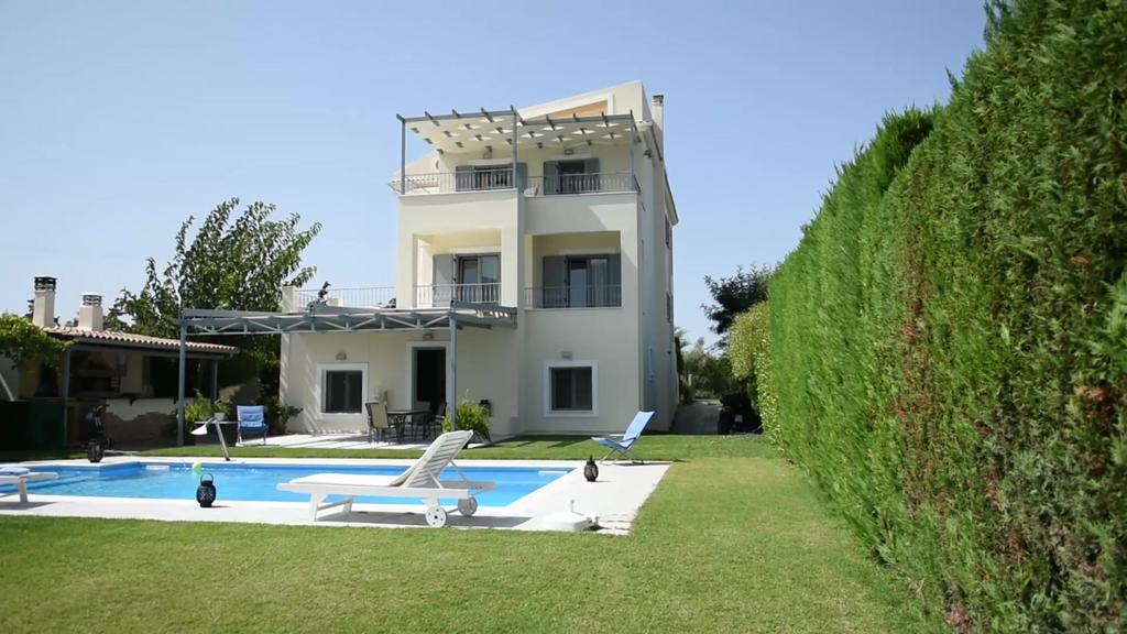 If you are looking to rent a luxury accommodation in Greece, specifically in the Peloponnese, you will find, next to Kyparissia, the Luxury Villa Dion overlooking the Ionian Sea. The dreamy Luxury Villa Dion offers you the privacy of a luxurious cottage in combination with the privileges of a five-star hotel on the west side of the Peloponnese. The 350 sq m villa is situated on a 1.150 sq m property with a breathtaking view and can be found right after the entrance of the small traditional village named Chalazoni and only 11 km away from Kyparissia, the capital of Triphilia. It has four bedrooms and two bathrooms. Villa Dion has a fully equipped kitchen for visitors to use, complete with an oven, refrigerator, and electric kettle, so they can prepare meals for themselves. The property has a private entrance and parking space, the area of the private pool is equipped with sun loungers and a large barbecue where you can have fun with friends. The villa can accommodate up to 10 guests. Make reservations for the luxurious but peaceful Villa Dion in Kyparissia to ensure a really remarkable vacation in the Peloponnese.