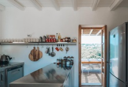A large villa with four bedrooms and four bathrooms is available at Casa Kombonada in Frigilianika, Kythira. This villa offers plenty of space for relaxing, making it perfect for families and groups. Can accommodate up to 14 people. Visitors can take advantage of a terrace, a verdant garden, and a swimming pool with a view. The outdoor experience is enhanced by an open-air bath. The property has a washing machine, a fully functional kitchen, and free WiFi. A work desk, fireplace, and balcony are further features. The port of Diakofti and the airport are both close to Casa Kombonada. It is the best place to start exploring the attractions of Kythira island and travel to its villages and beaches with ease. Compared to the beach, its middle location ensures a cooler and more comfortable environment, particularly after sunset.