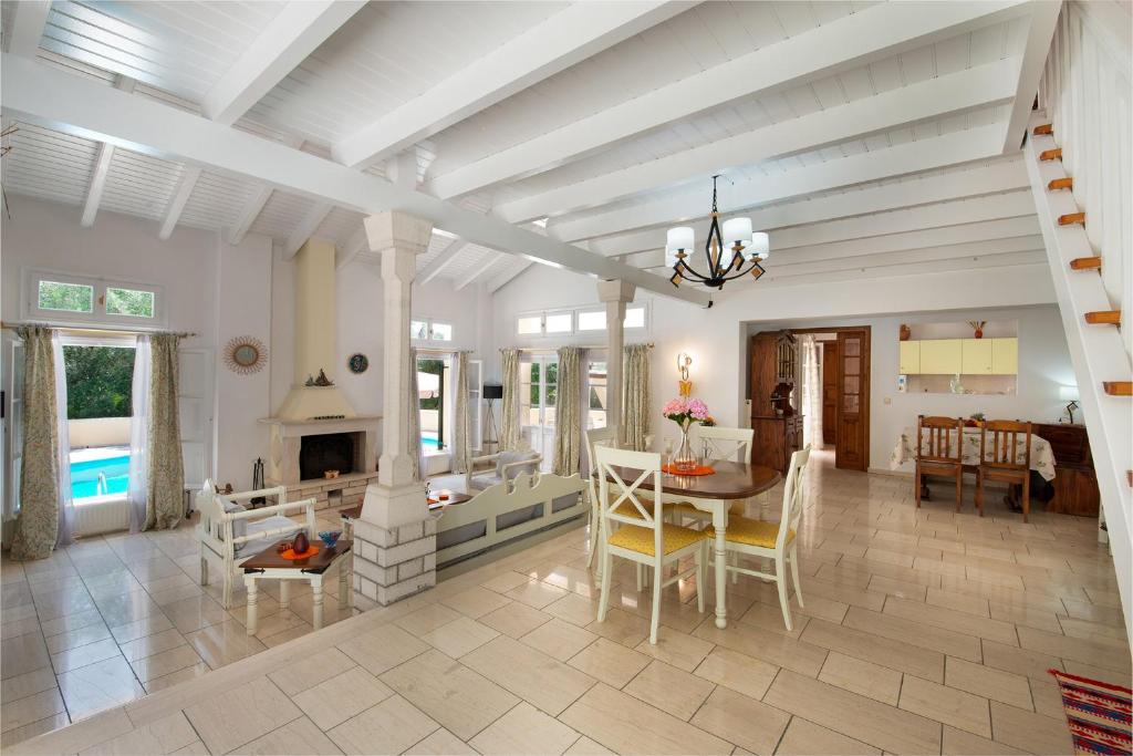 The settlement of Magazia in Paxi is home to the large and inviting Villa Athina, which is well situated to explore the entire island. The grounds of Villa Athina are sizable; the spacious sun terrace and pool are perfect for sunbathing, and the covered dining area and BBQ area are great for outdoor living. Traditional stone walls completely enclose this outdoor area to offer complete solitude. The villa's interior is as opulent as its façade; behind its tall wood beam ceilings, it provides a cool and airy area. With access to all the patios, the roomy living and dining space is cosy, warm, and well-lit. The living room, which also has access to the terrace, and the BBQ area are both close to the well-equipped kitchen. On the other side of the building, the master double bedroom features an en suite bathroom as well as a walk-in closet and direct access to the terrace. A bathroom and two twin bedrooms, one of which has an en suite shower room, round out the property. The villa can accommodate up to 6 guests.
