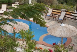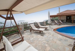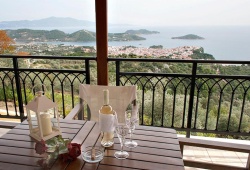 Villa Fotini is located on a stunning mountain in the Megali Ammos region, just 2.5 kilometers from the town of Skiathos. This lovely property was created for people who want both luxury and peace! Being the only two-story building on the property, it promises to provide amazing vacations and lifelong memories. A once-in-a-lifetime experience, the stunning view over the port, Skiathos's town, and the nearby islands of Skopelos and Alonissos is sure to leave you in wonder. The villa has a dining area, a fully functional kitchen, a balcony with views of the sea, three bedrooms, two bathrooms, bed linens, towels, and a flat-screen TV with satellite channels. In their soundproof room with tiled floors and a fireplace, guests may enjoy a relaxing stay. There is an outdoor dining area on the property. A rooftop pool is available for your leisure time. It is the ideal option for a family or a gathering of friends because it can easily fit up to six people. Megali Ammos Beach is 1.5 km from Villa Fotini, while Skiathos Airport is 4 km from the property.