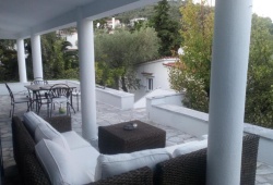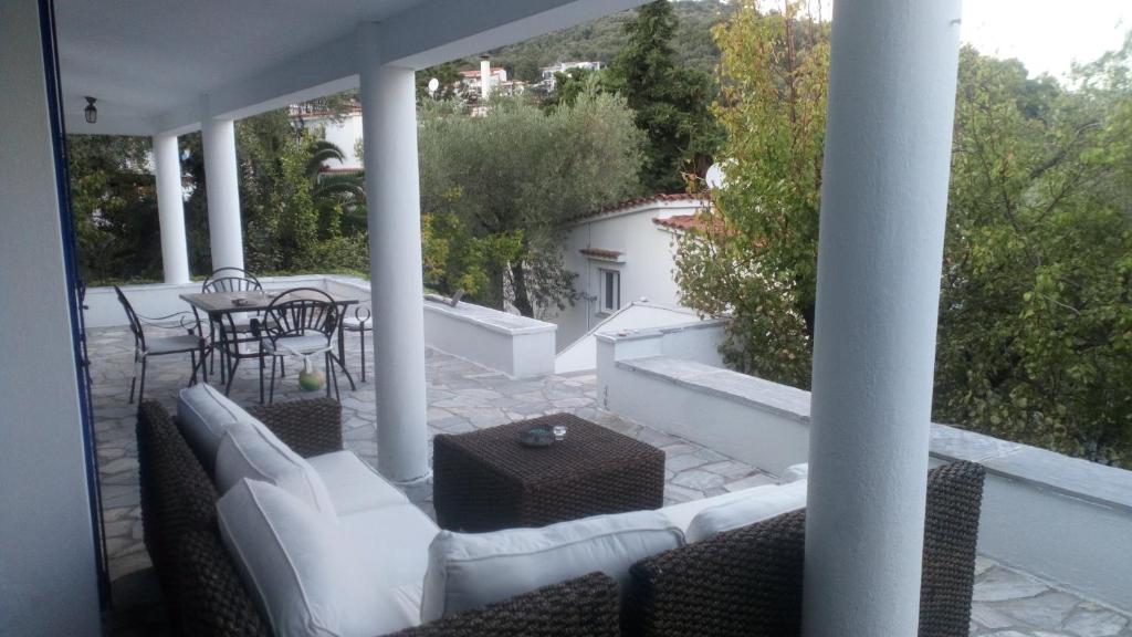 The Villa Ftelia is ideally situated near Skiathos town, and Megali Ammos beach is only 100 meters away. This vacation home has been completely renovated, featuring air-conditioned bedrooms, the newest bathrooms, and spacious verandas. A flat-screen TV, a fully furnished kitchen with a microwave and oven, and a private bathroom with a hair dryer and walk-in shower are among the amenities. Along with a coffee maker and kettle, there is also a refrigerator and stovetop. The villa can house up to six people, and each unit has towels and bed linens. Visitors can take day cruises from the port and yacht marina, which are within 10 minutes' walk from Villa Ftelia. Additionally, there are excursions and attractions to the nearby small islands and beaches. The property is 3 km from Skiathos Airport.