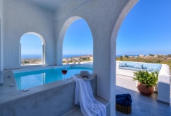 Perched on the highest point in the historic Megalochori village of Santorini, with a panoramic outlook over the village and the Aegean Sea, sits the opulent Villa Blanca. Built in 2016, this new home honours the village's traditions while combining modern elements with classic Cycladic architecture. Situated inside the family vineyard dating back to the 18th century, Villa Blanca Santorini is only 500 metres from the well-known Caldera and 6 miles from the capital, "Fira." It can comfortably accommodate 1- 4 people and features a living room, kitchen, and balcony with an ocean view and a jacuzzi. Currently Santorini's most visited location, the Blanca Villa boasts one of the best views of the serene Aegean Sea and the village of Megalochori. Blanca Villa is the ideal place to stay in Santorini's stunning surroundings.