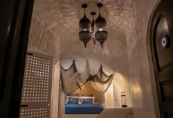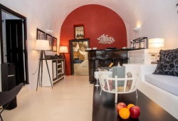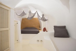 Located in the centre of the peaceful Megalochori village on the island of Santorini, Villa Orpheus is a completely refurbished cave house that was built in 1929 and provides the ideal environment for luxurious vacations and romantic getaways for one or two couples. The back half of Villa Orpheus, a Cycladic-style villa, is carved out of the volcanic rock. Villa Orpheus's basic luxury is encapsulated in the wooden main entrance door that opens to a lovely courtyard including built-in couches and a heated outdoor covered plunge pool. Upon entering the home, one is greeted with a distinctive ambiance that combines historical imagery with modern comfort and luxury thanks to the marble floor, exquisite hues, and well chosen furnishings. The villa can accommodate up to 4 guests.