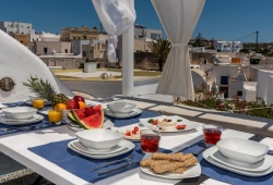 Megalochori, with its central plaza in its center, is a charming and amiable community. Here, classic eateries and cafés attract both locals and visitors who come to relax and enjoy excellent company. Spending an evening here is worthwhile, as you can enjoy the cozy ambiance and sample some of the excellent regional cuisine. Around the village, there are other typical stores, cafés, and bars. Escape Villa Orpheus to head down and explore Megalochori village. With the two greatest churches situated in the village center, Megalochori's most notable features are the steeples of these magnificent buildings. Some sections of the community include smaller chapels and churches. Across the road from the town, the church of Agios Nikolaos, for instance, is situated on a spectacular cliff overlooking the Caldera and offers breathtaking views of both the area and the captivating sunsets in Santorini.