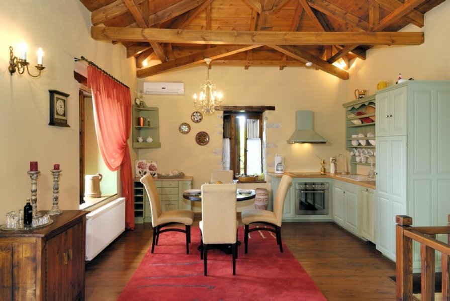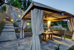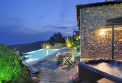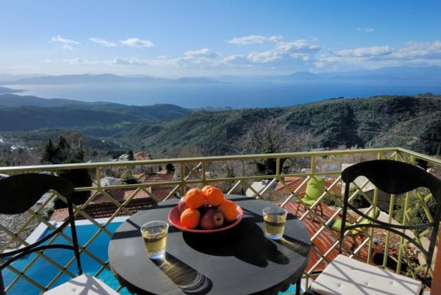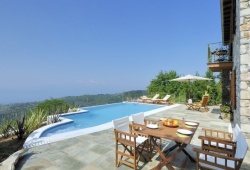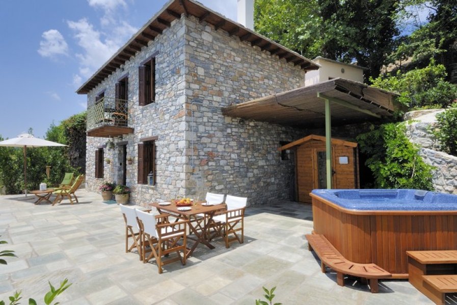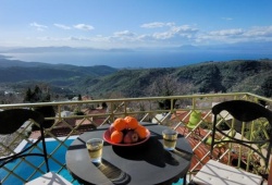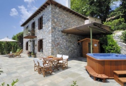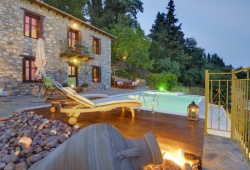 Ortansia is a stunning villa in the mountainous region of Pelion, situated above the village of Milies. With the mountain's thick, dense vegetation on one side and stunning sea views on the other, the terrace in front of the houses offers an incredible combination of scenery. Villa Ortansía may accommodate two to four people. The living room is located on the first floor and features a cozy, comfortable sitting area with a gorgeous fireplace, all in keeping with the traditional architecture of this area. There is an eating space in the open-plan kitchen that is completely furnished, with a dishwasher. This level has a tiny balcony with beautiful views of the mountains and sea. The ground floor has a bathroom with a shower and a toilet, as well as two bedrooms with double beds. There is a modest en suite shower and toilet in one bedroom. The villa contains a television, a washing machine, and air conditioning, which is not included in the fee. Twice a week, linens and towels are cleaned and changed. Enjoy the private swimming pool for relaxation. Villa Ortansia is only 7 minutes away on foot from Milies village center, and it's within 4 kilometers distant by car.