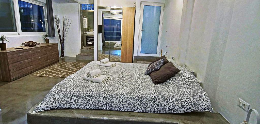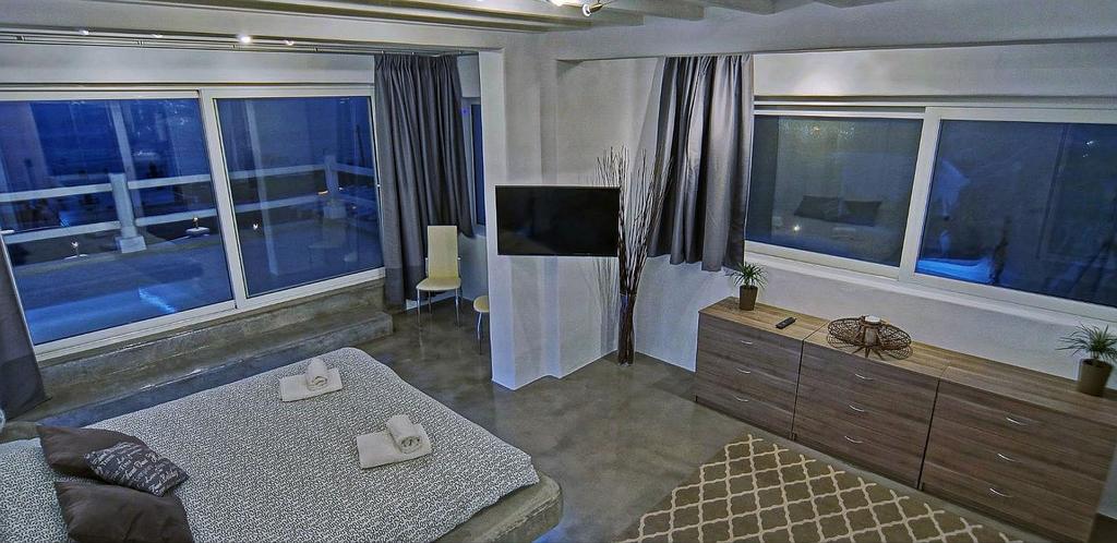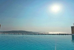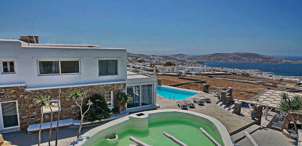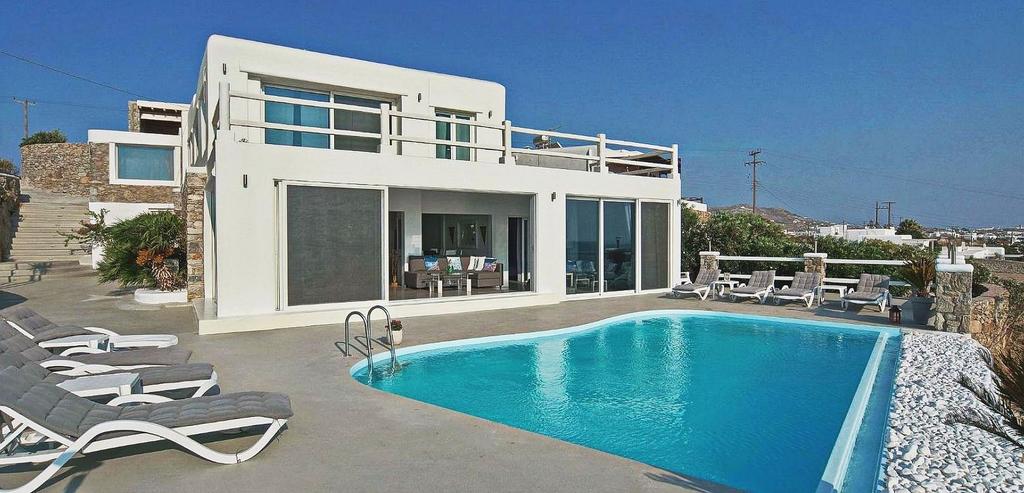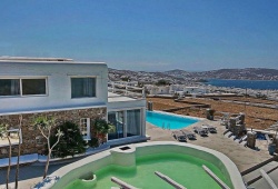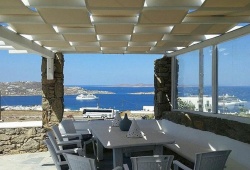 Located in the best spot on Mykonos island combining a panoramic view of six aegean islands with the unlimited aegean horizon and overlooking the Mykonos town. For your moving around, most important to note for our visitors is the location of the villa which is at the periphery of Mykonos town. It takes literally a 10 minutes walk to reach the center of the town. Reaching the fabulous Mykonos beaches is equally easy as it is near the main junction of the island. Finally the airport or seaport are both 5 minutes away by car.