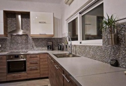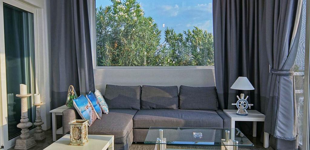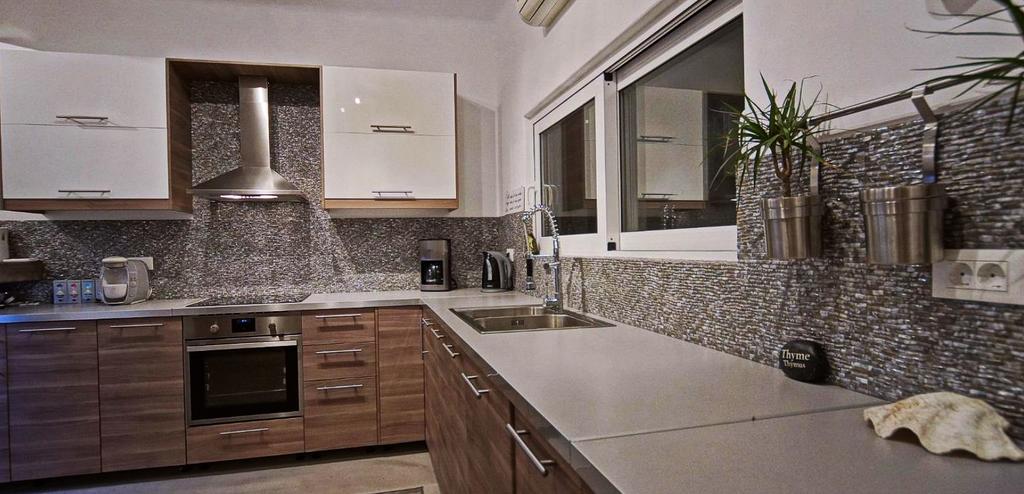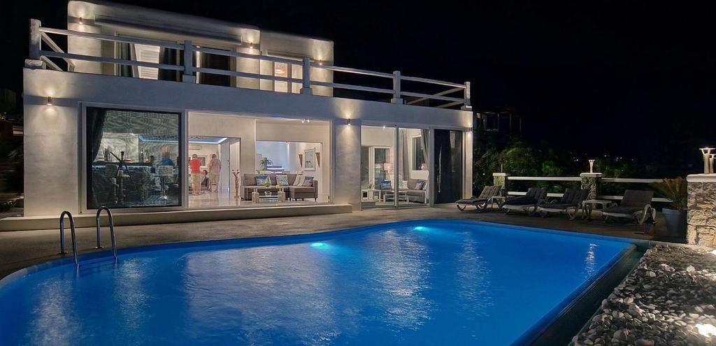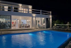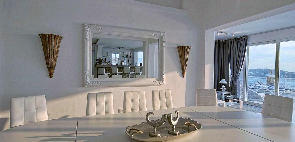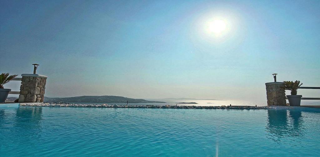 Villa has 3 living rooms and facilities include a fully equipped kitchen, dinig room for 14 guests, bedroom with ensuite bathroom, infinity and jacuzzi pool with sitting area and waterfall, loungers and sun beds, pool terrace with sitting areas. There is also a pergola sitting 20 persons with bar for entertainment, BBQ grill for gatherings, and a private parking area for your car. The villa can accommodate up to 14 guests. If your searching for seclusion and relaxation, Blue Horizon Villa in Mykonos is the ideal accommodation.