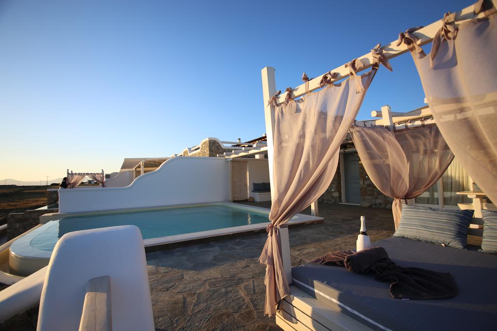 Villa Evi is a newly built villa in Cycladic style that is fully equipped to host up to 5 people with all modern facilities. It has an extensive view of the sea and is located in the hub of Mykonos. The Villa Evi has an expansive layout, exquisite decor, and the newest conveniences. Between villas and suites, there are several lodging options available to guests, each with a private pool and cozy living spaces. Beautiful views of the Aegean Sea, the surrounding landscape, or the quaint town of Mykonos may be found from every home. The accommodation features a dining space, a lounge area with a flat-screen TV, and air conditioning. Certain apartments have a patio or balcony. A kitchen with a refrigerator and oven is also present. There's also a kettle and cooktop available. There are bed linens and towels provided. Villa Evi located in town or Chora, is close to all the famous beaches of Mykonos, such as Paradise Mykonos, Paraga Beach, Platis Gialos, all the hot spots of Mykonian nightlife, and traditional and historical places such as the Windmills, Little Venice, e.t.c. Mykonos Airport is 300m away from the property.