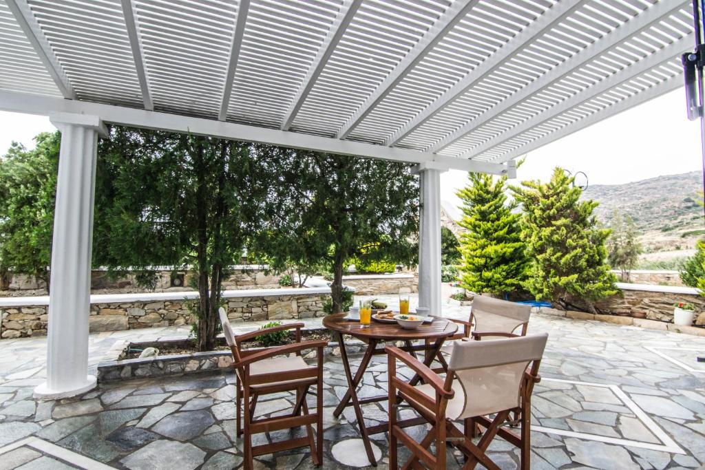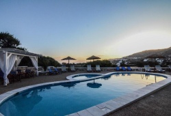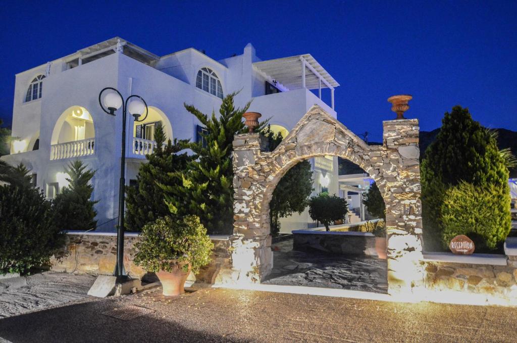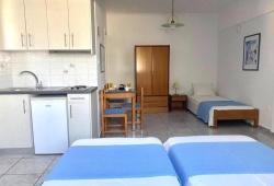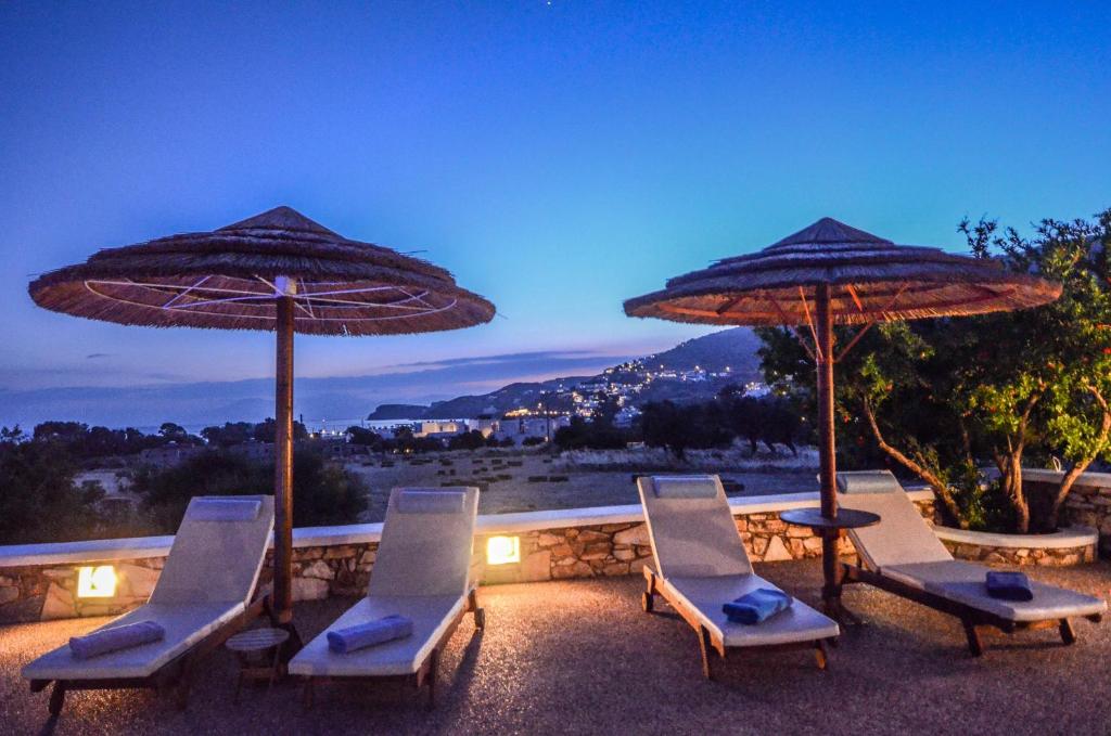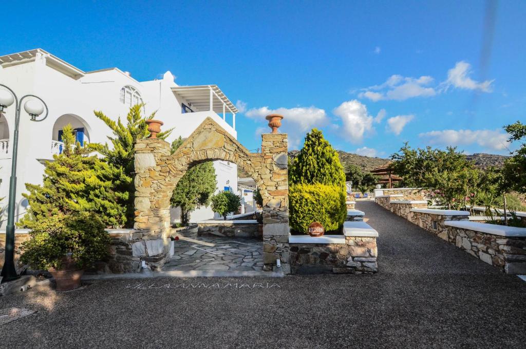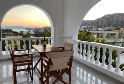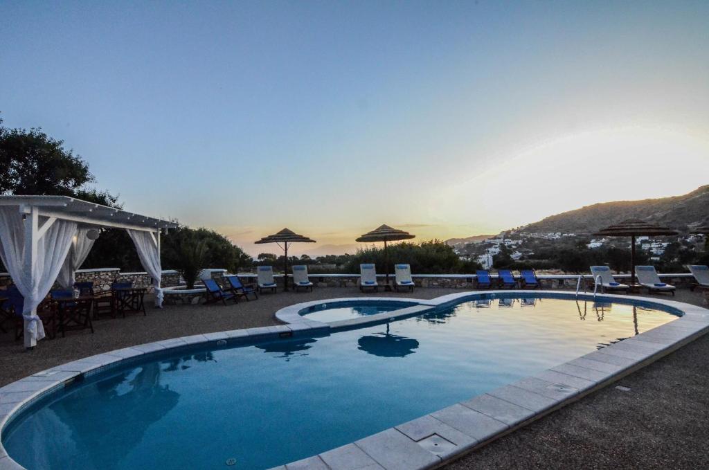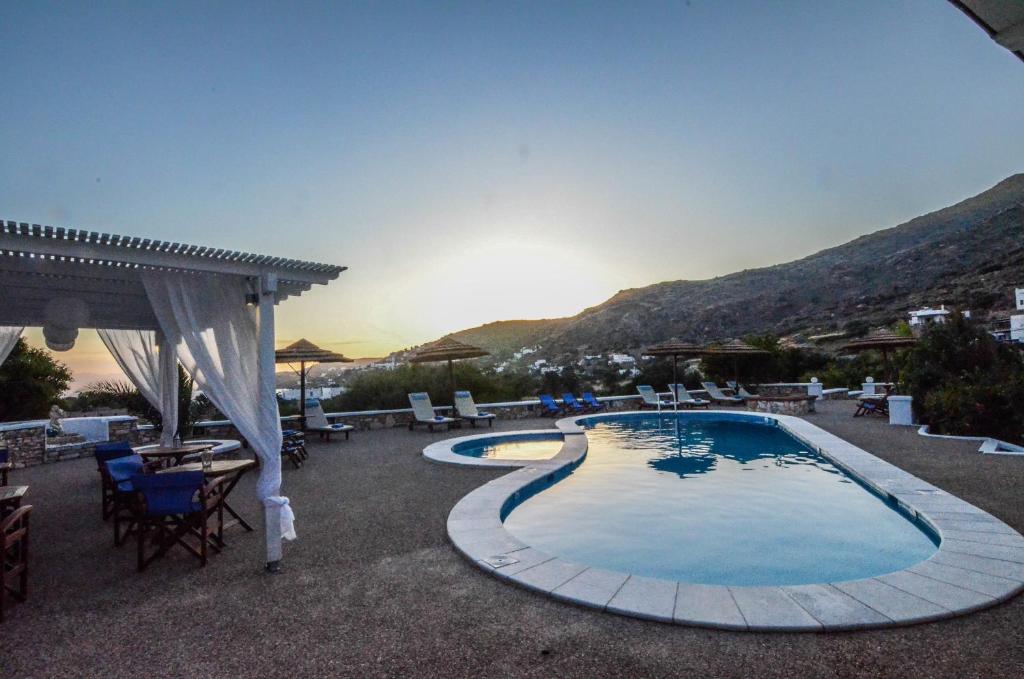 Situated 500 meters from Mylopotas beach, the family-owned Villa Anna Maria offers tranquil and quiet self-catering lodging in Ios. Families and couples seeking a peaceful vacation away from the typical bustle of young people sharing a room will find it suitable. Some of the air-conditioned Anna Maria apartments and studios have a balcony overlooking the garden and pool, while others have a view of the sea. Each one has a bathroom with a hair dryer, a kitchenette with an eating space, and a flat-screen TV. Numerous cafes, restaurants, and mini-markets can be found along the coastal road. Taxis pick up and drop off at the parking area next to the building, and the bus stop is on the beach road. The villa is located 8 km from the port and 3 km from the charming town of Ios, which is also home to the nightlife.