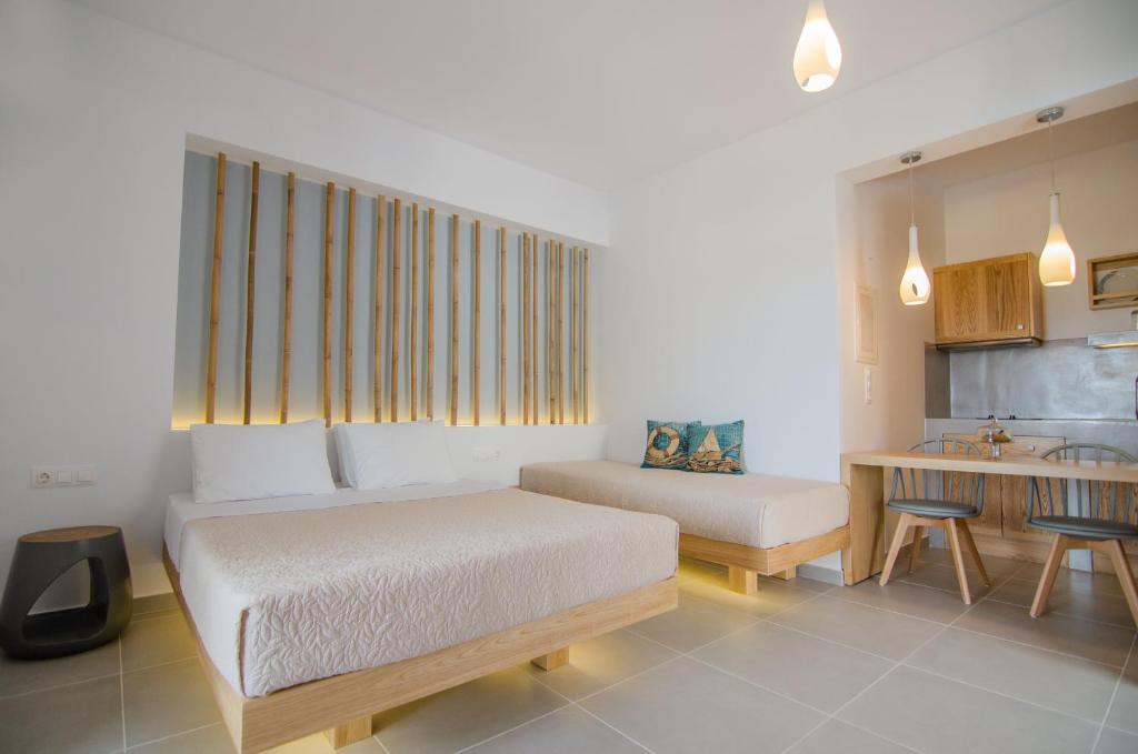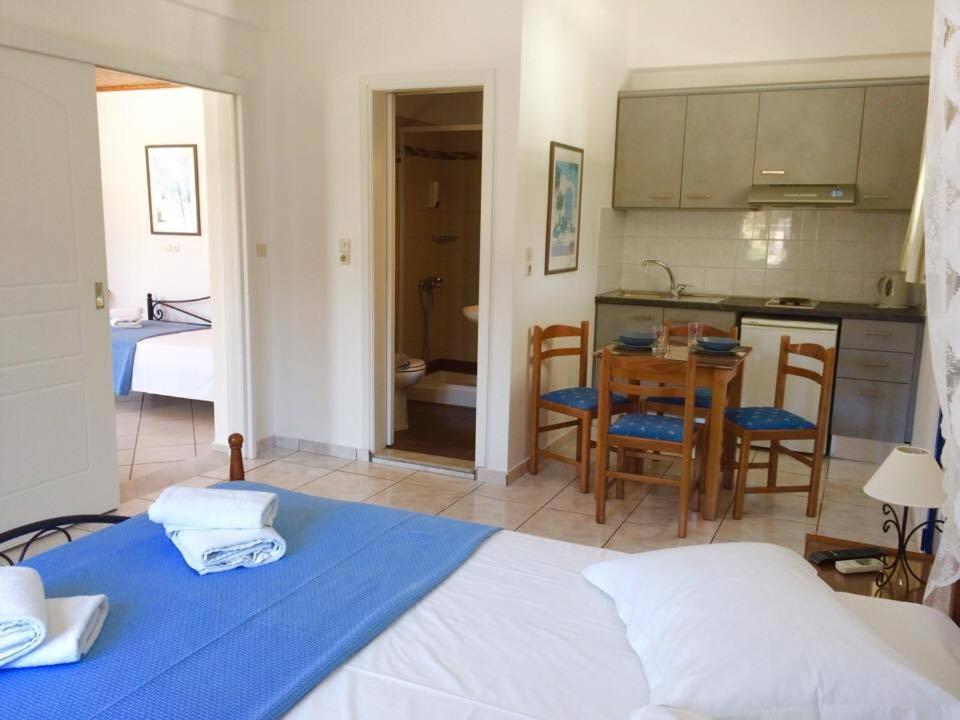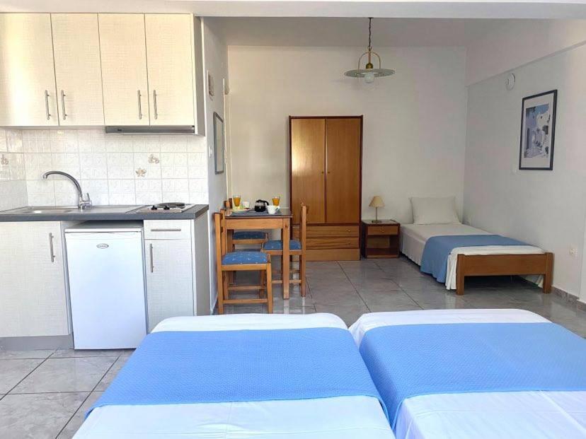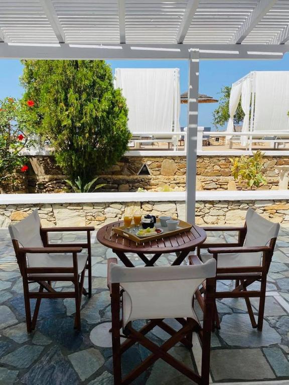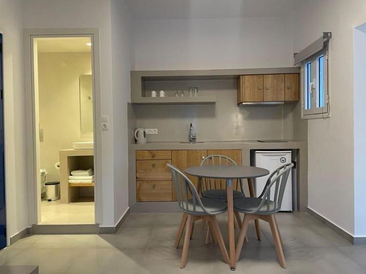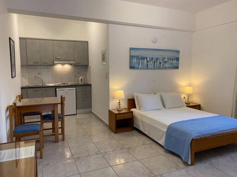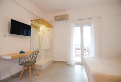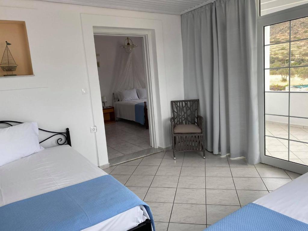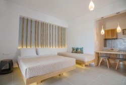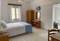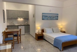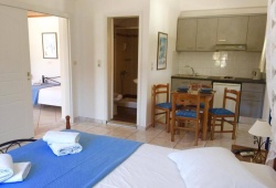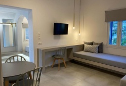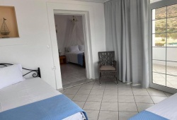Situated 500 meters from Mylopotas beach, the family-owned Villa Anna Maria offers tranquil and quiet self-catering lodging in Ios. Families and couples seeking a peaceful vacation away from the typical bustle of young people sharing a room will find it suitable. Some of the air-conditioned Anna Maria apartments and studios have a balcony overlooking the garden and pool, while others have a view of the sea. Each one has a bathroom with a hair dryer, a kitchenette with an eating space, and a flat-screen TV. Numerous cafes, restaurants, and mini-markets can be found along the coastal road. Taxis pick up and drop off at the parking area next to the building, and the bus stop is on the beach road. The villa is located 8 km from the port and 3 km from the charming town of Ios, which is also home to the nightlife.