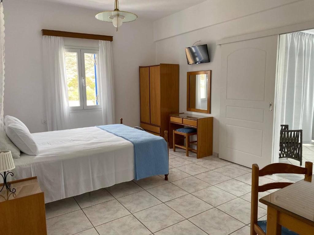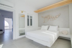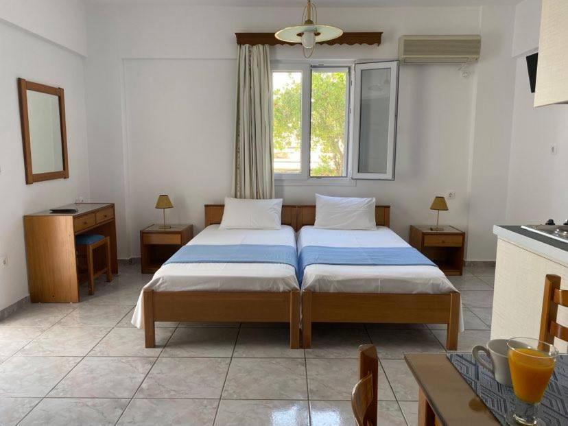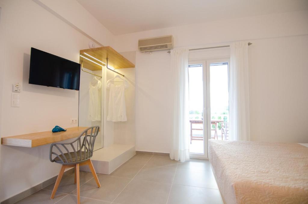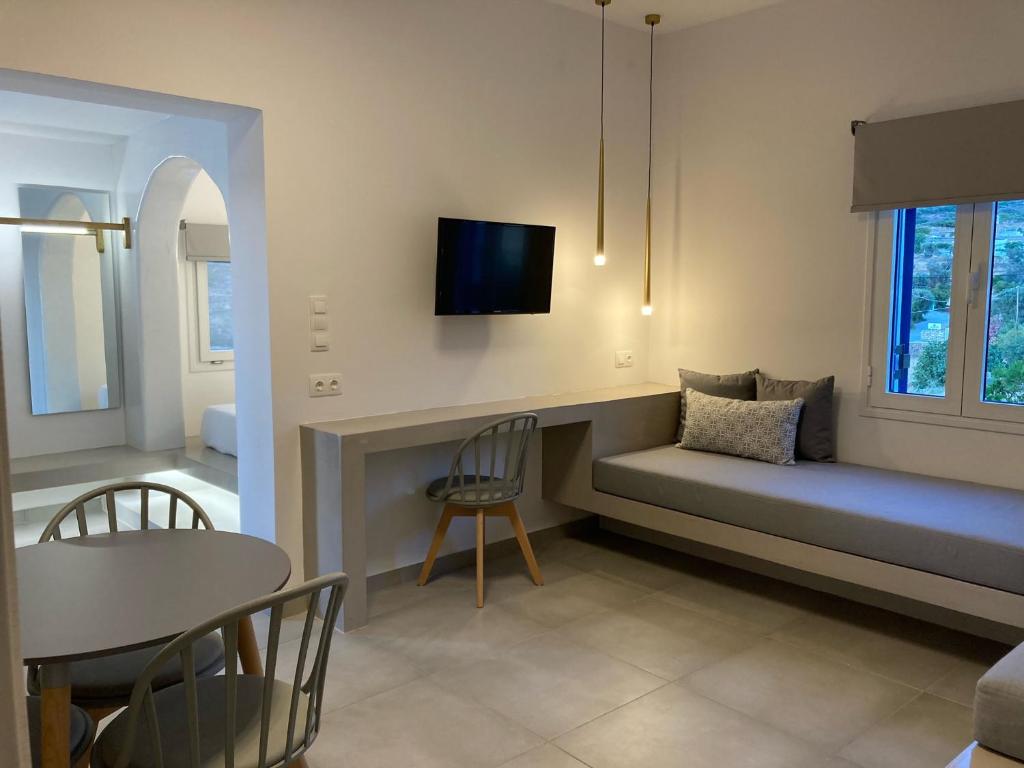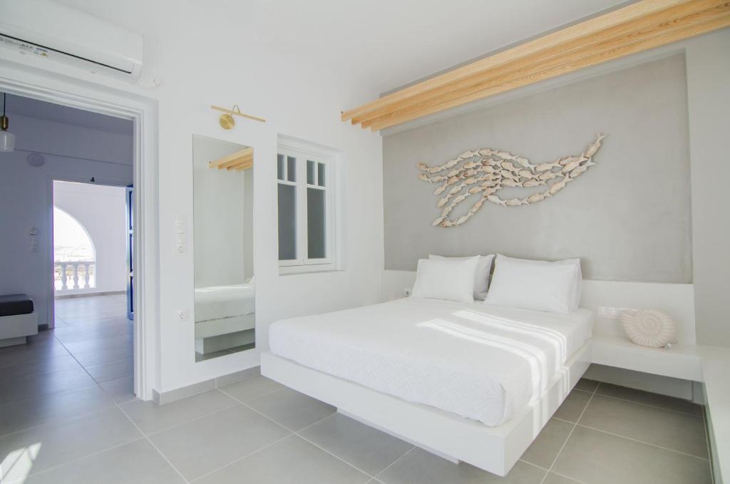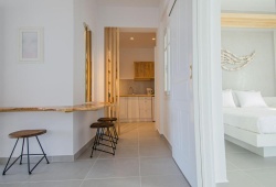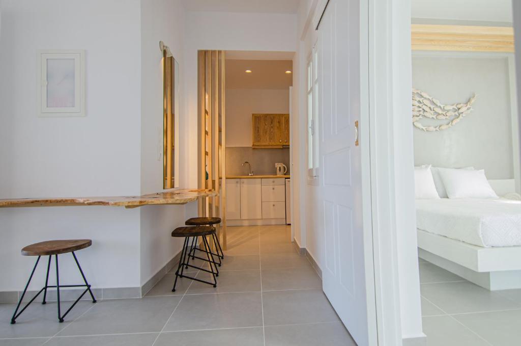 Situated 500 meters from Mylopotas beach, the family-owned Villa Anna Maria offers tranquil and quiet self-catering lodging in Ios. Families and couples seeking a peaceful vacation away from the typical bustle of young people sharing a room will find it suitable. Some of the air-conditioned Anna Maria apartments and studios have a balcony overlooking the garden and pool, while others have a view of the sea. Each one has a bathroom with a hair dryer, a kitchenette with an eating space, and a flat-screen TV. Numerous cafes, restaurants, and mini-markets can be found along the coastal road. Taxis pick up and drop off at the parking area next to the building, and the bus stop is on the beach road. The villa is located 8 km from the port and 3 km from the charming town of Ios, which is also home to the nightlife.