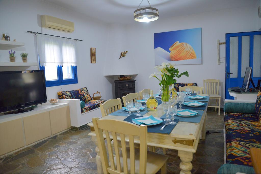 Villa Relax can easily accommodate up to 8 guests and is completely furnished with all the facilities of today's lifestyle. There are three bedrooms, a living room with an HD TV, two completely furnished bathrooms, and a fully functional kitchen with all the necessary. Each bedroom has its own door and is encircled by a spacious terrace. There are two more outdoor showers that are perfect for using after a sea swim. In addition, there is free WiFi and a sizable parking area at the property. Every room has air conditioning and is smoke-free. For families and groups of friends looking for a quiet vacation that is nevertheless near to the beaches and city center, Traditional Villa Relax in Mylos is the perfect choice.