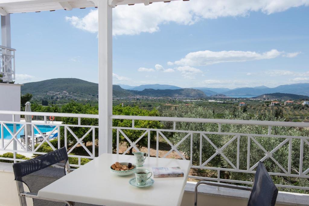 For your next vacation, the luxurious Villa Christina awaits you to stay on a hill with expansive views in Agios Adrianos, Nafplio.With a spacious pool, peace, and a never-ending view of the Argolic plain, the city of Nafplio, and the Palamidi stronghold, this cozy villa is the perfect spot to unwind and enjoy your vacation days. Offer a balcony with sea, pool, and mountain views; amenities include a private bathroom with a bath, a hair dryer, and complimentary toiletries; a dining area; a kitchen that is well-equipped; and a flat-screen TV. Along with a coffee maker and kettle, there is also an oven, refrigerator, and stovetop available. Units at the villa complex come furnished with towels and bed linens. Enjoy the swimming pool for your relaxing moments and use the barbeque facilities for grilling. Bourtzi and Nafplio Syntagma Square are both 8 kilometers apart from Villa Christina.