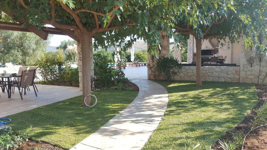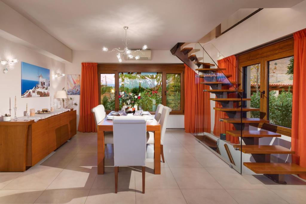 If you are searching for a private vacation rental in the countryside of Nafplio, Villa Elva is your best choice. This villa has an outdoor pool, mountain views, and air-conditioned accommodation. It can accommodate up to ten persons, and facilities include three bedrooms, four bathrooms with a hot tub and a bidet, two living areas with a dining area and a seating area, and a fully furnished kitchen with a dishwasher, oven, and microwave. The room's ambience is enhanced by the fireplace, tiled floors, and serene atmosphere. There is an outdoor dining area on the property. Guests can enjoy preparing meals in the villa's garden and barbeque area. Villa Elva is located 5 km from Akronafplia Castle, while Nafplio Syntagma Square is 5.2 km away.