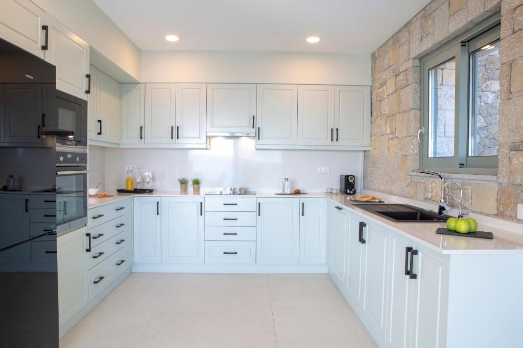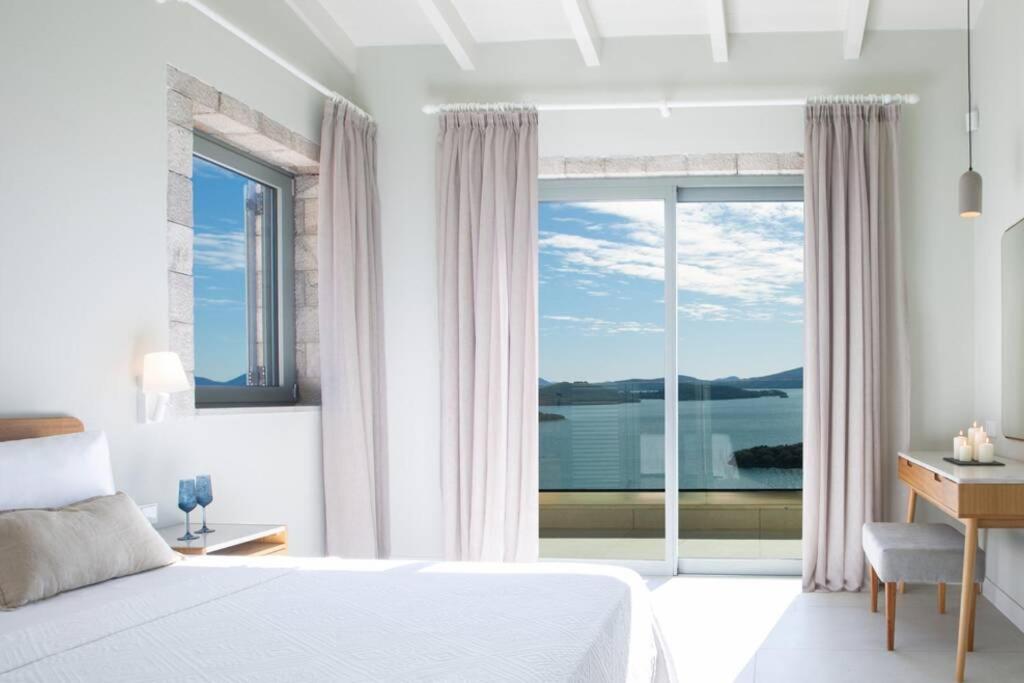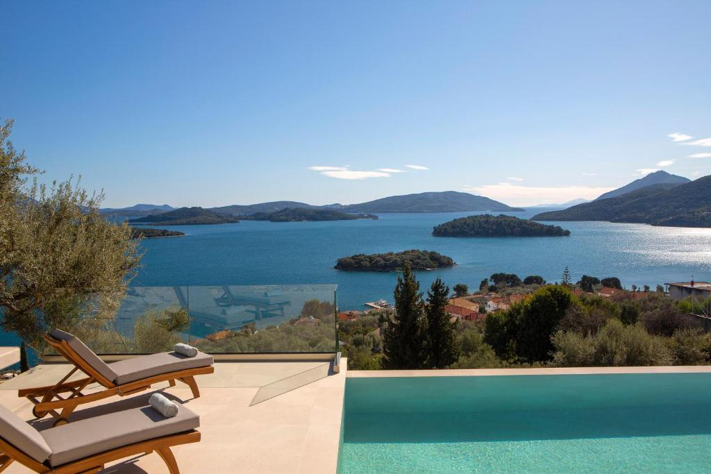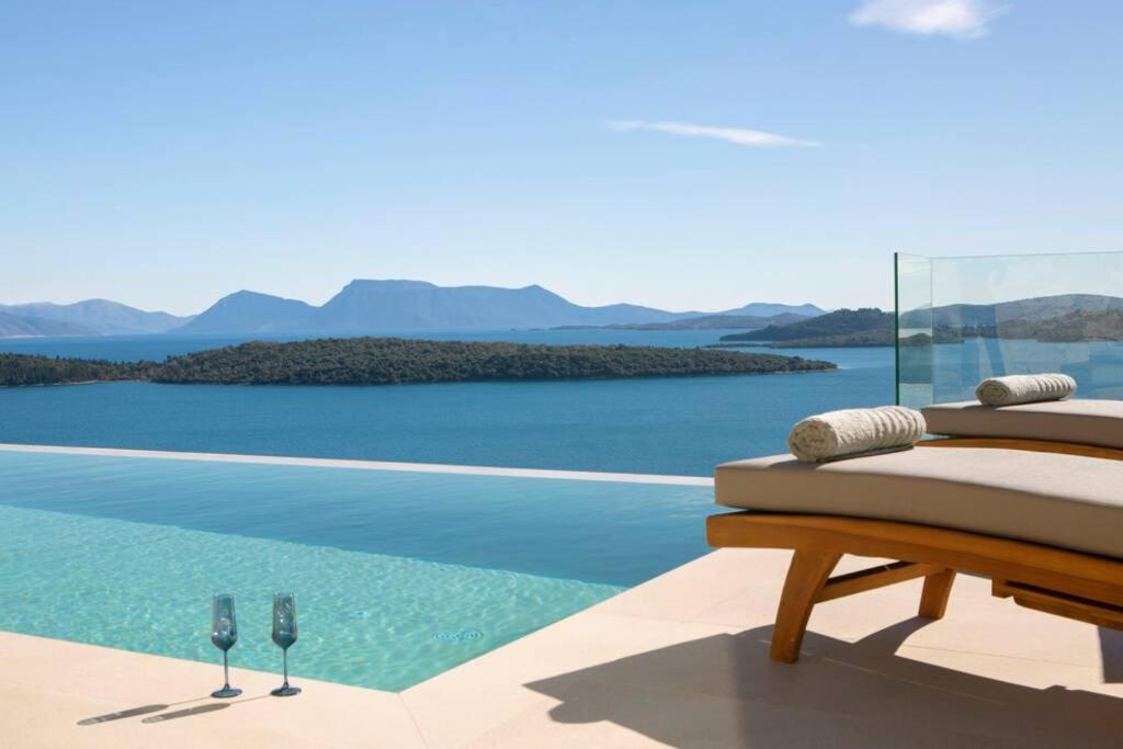This Lefkada villa can host up to eight people in its four sea view bedrooms with en suite bathrooms. With custom-made, solid iroko wood furniture, plush pocket sprung mattresses, and naturally textured textiles, every bedroom is tastefully decorated. There is a walk-in shower in three of the bathrooms and a cozy bathtub in the fourth. A strong rain shower is a feature of all four bathrooms. At 15 meters (50 feet) in length, Villa Ilaira has one of the longest private villa pools on the island. It's perfect for swimming laps, and in the colder months of May and October, it's heated. When desiring a trip to Lefkada and searching for a private villa, Ilaira is the ideal option.