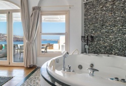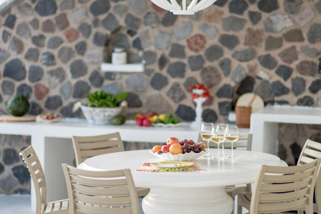 Up to eight people may stay in the 180 square meter, four-bedroom Luxury Villa Ode in Oia, Santorini, which is divided into two stories and connected by an elevator. A 120 square meter, fully furnished luxury apartment suite with two bedrooms that can house up to four guests is located on the ground level. The main bedroom also has an adjoining Jacuzzi. Ode Villa features a swimming pool, a dining area with a barbecue, couches, and loungers for visitors to unwind on while taking in the spectacular sunset in the spacious outdoor area. A 50 square meter private apartment with a year-round view of the sunset is located on the first level. With two king-size beds—one on the suite's main level and one in the loft—it can sleep up to four people. Some of the villa facilities include air conditioning, TV, bathroom with toiletries, fully equipped kitchen, Wifi and a parking lot.