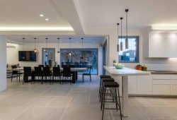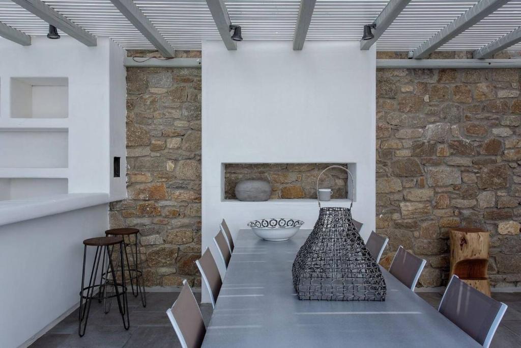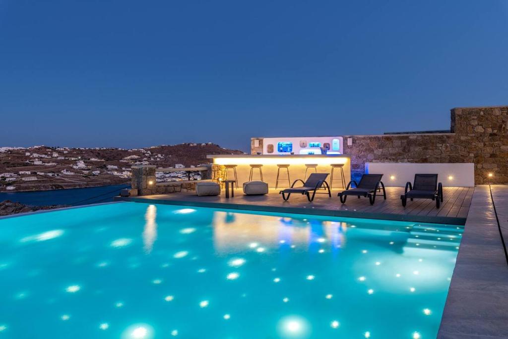 Offering tourists an eco-friendly lodging in Korfos, Ornos Nolan Villa is a sustainable villa surrounded by sea views. Korfos Beach is 2.6 kilometers away from the air-conditioned accommodation. The nonsmoking villa has a hot tub and free WiFi covered throughout the property. A fully furnished kitchen with an oven and dishwasher, eight bathrooms with a bath, a TV with streaming services, and seven bedrooms make up the roomy villa. The cottage is furnished with linens and towels. An individual entrance is provided by the lodging for increased privacy. The property is equipped with a tennis court. At Ornos Nolan Villa in Mykonos, visitors may take use of the on-site garden or go hiking and biking. The villa can accommodate up to 16 guests.