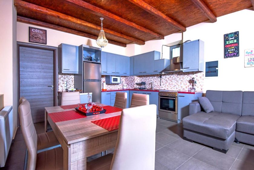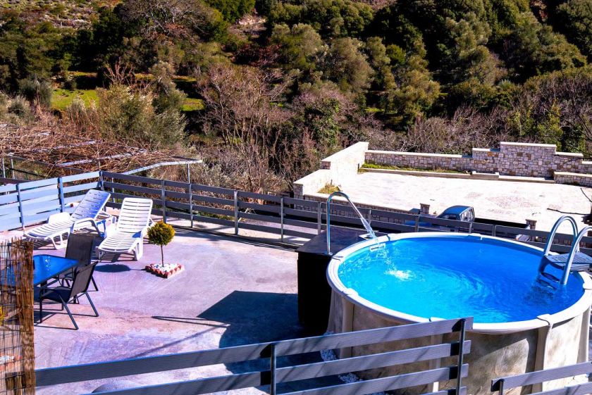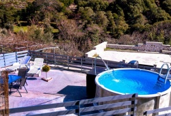Situated in the Temenia village region, Villa Temenia is only a fifteen-minute drive from the beaches of Sougia and Paleochora. The dining room, kitchen, and fireplace are all located in the living room area. The fireplace is particularly intriguing. There's a washing machine and wifi accessible. Three bedrooms make up the villa: one has a queen-size bed, a TV, and a baby crib; another has a semi-double bed that can be accessed; and a third has a single bed. There is a shared bathing room available. Enjoy the pool and BBQ area outside while you take in the stunning surroundings and surrounding mountains. There is parking available. The villa can accommodate up to five guests. Villa Temenia is the ideal option if you're looking for a private place to stay in Chania, specifically in the Paleochora area.