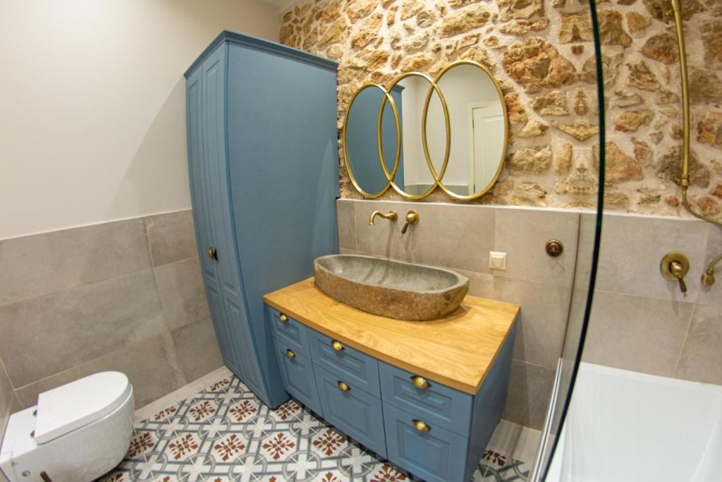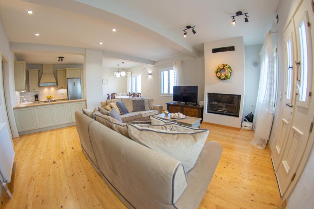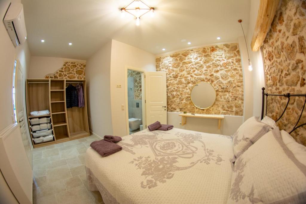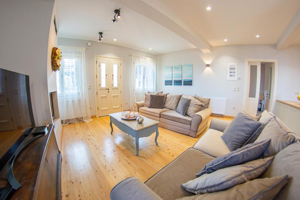On the island of Corfu, this beautiful villa, which can accommodate four people, is situated near Lakones, roughly 1.5 kilometers from Paleokastritsa beach. Villa Markezinis has two bedrooms, a living area, a kitchen with an oven and dishwasher, two bathrooms with a bathtub, and a flat-screen TV. A fireplace and soundproofing are also features of the cozy, air-conditioned accommodation. There is an outdoor dining area on the property. Free WiFi and free private parking are available at the property. The nearby historical sites include Angelokastro, which is 2.9 km away. Platakia Beach is 80 meters from Villa Markezinis, while Spiros Beach is 100 meters away. Corfu International Airport is 24 km from the vacation rental.